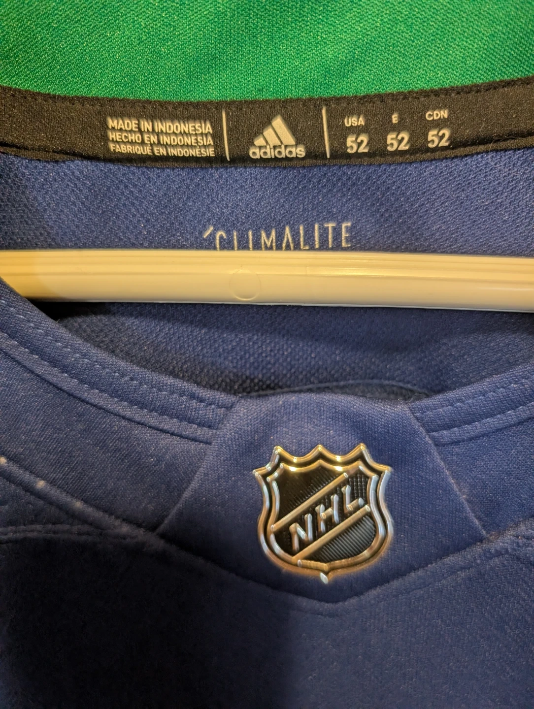 Selling a Vancouver Canucks Adidas NHL jersey! It features the classic blue, green, and white colours of the team. The jersey has the Adidas Climatelite technology to keep you cool and comfortable. A great addition to any Canucks fan's collection!