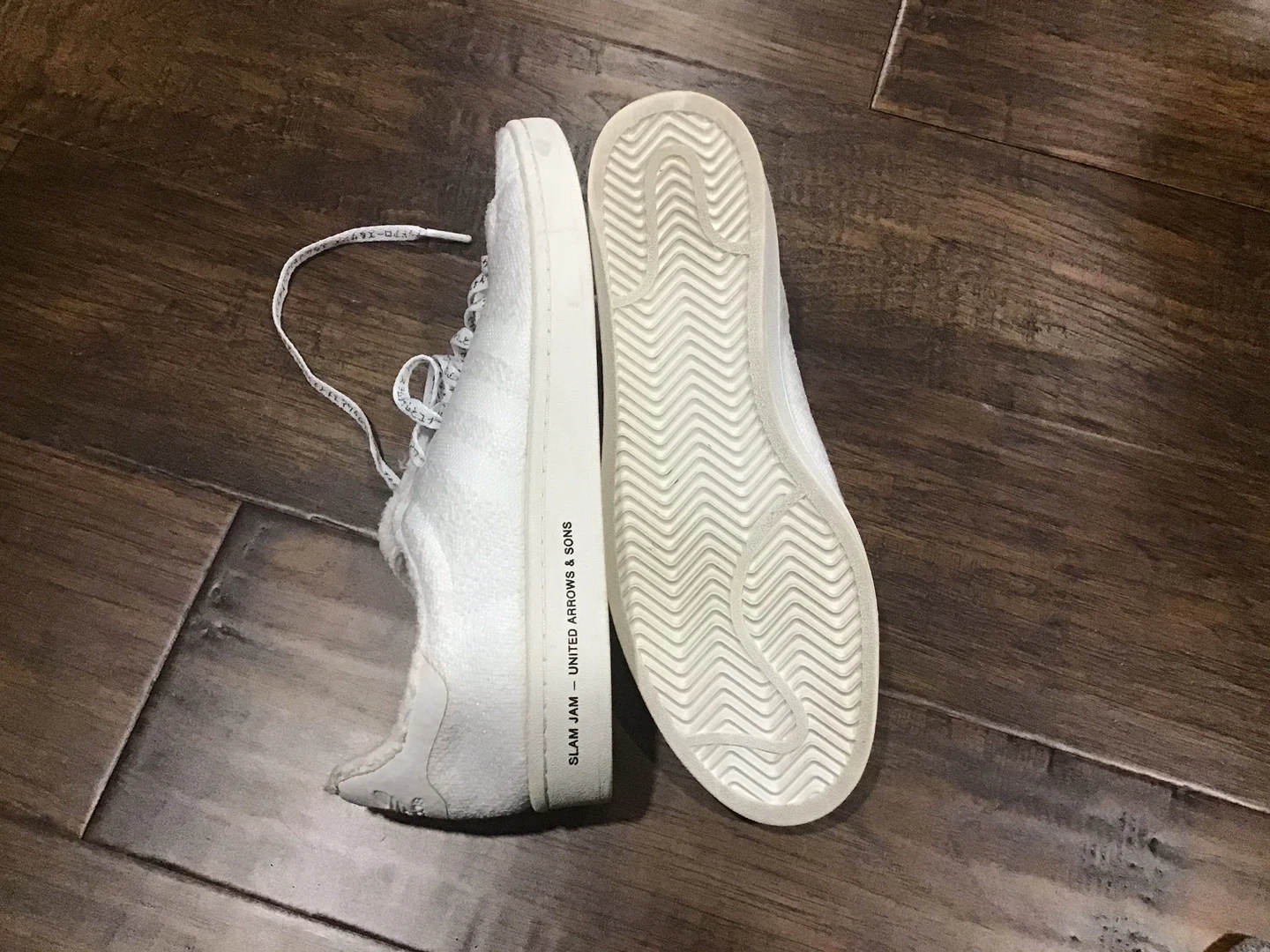5Selling a pair of Slam Jam x United Arrows & Sons sneakers! They are white and feature unique detailing on the laces and sole. Great for adding a stylish touch to your outfit