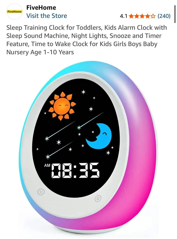 422New Sleep Training Clock for Toddlers, Kids Alarm Clock with Sleep Sound Machine, Night Lights, Snoo and Timer Feature, Time to Wake Clock for Kids Girls Boys Baby Nursery Age 1-10 Years Missing instruction manual Asking $20 Pick up near Cookeville and Danforth