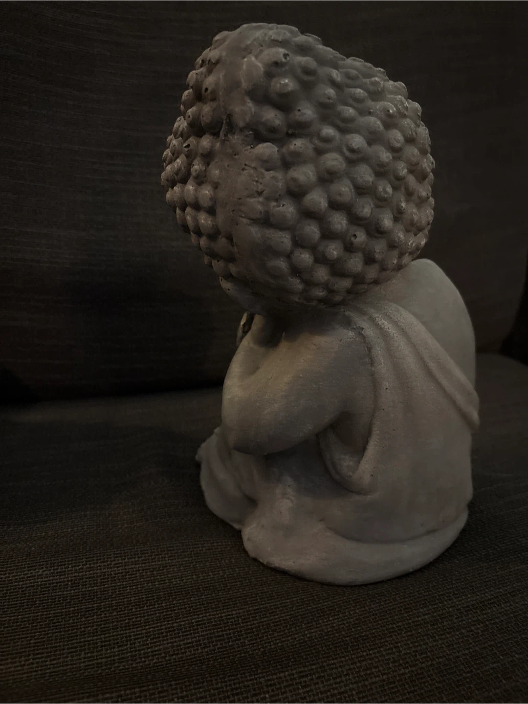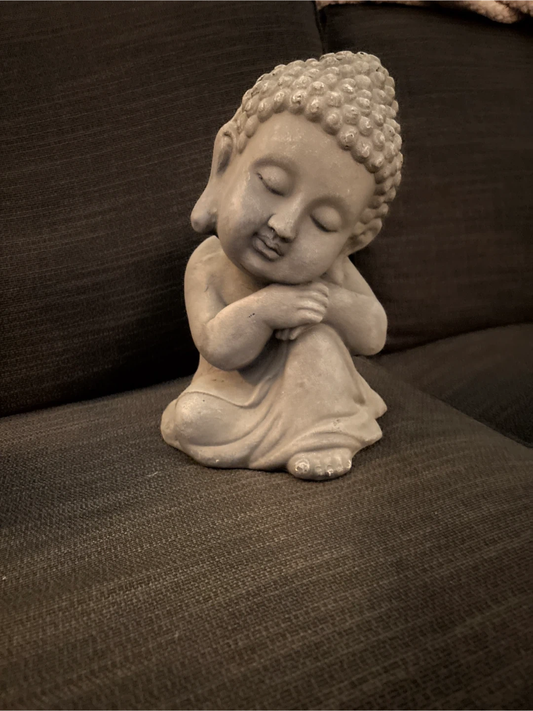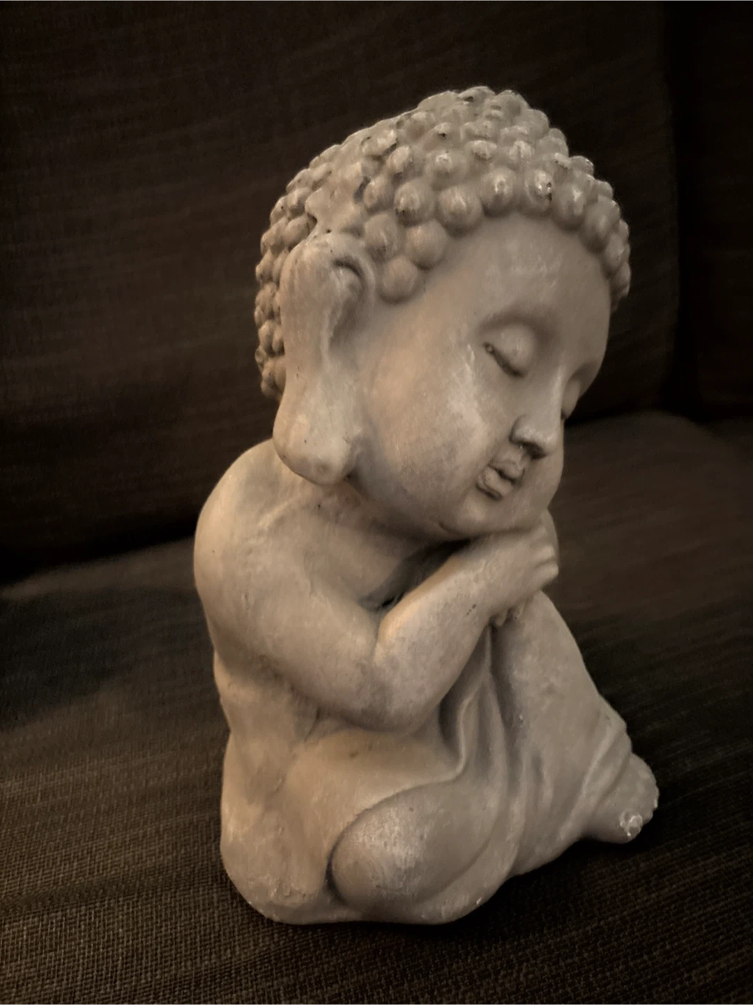 78A cute sleeping Buddha statue! It is in great condition and would be a lovely addition to any room in your home. Material is ceramic.