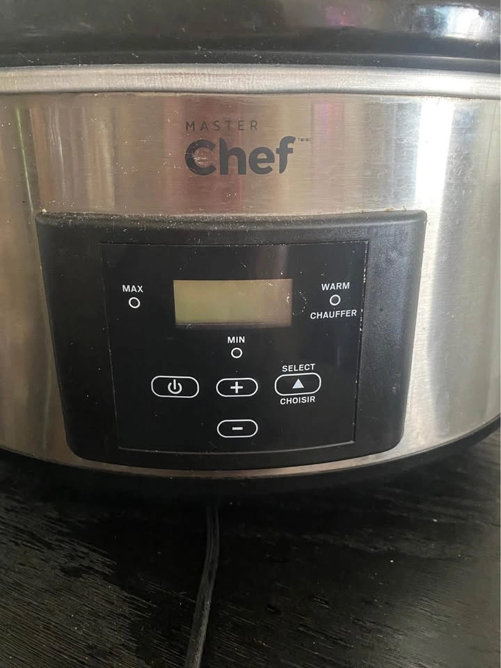 Master Chef Slow cooker 6qt. No longer needed. Shows signs of use as seen in the pictures without affecting performance. Retails at Canadian Tire at 80$ but asking 50$ OBO.
