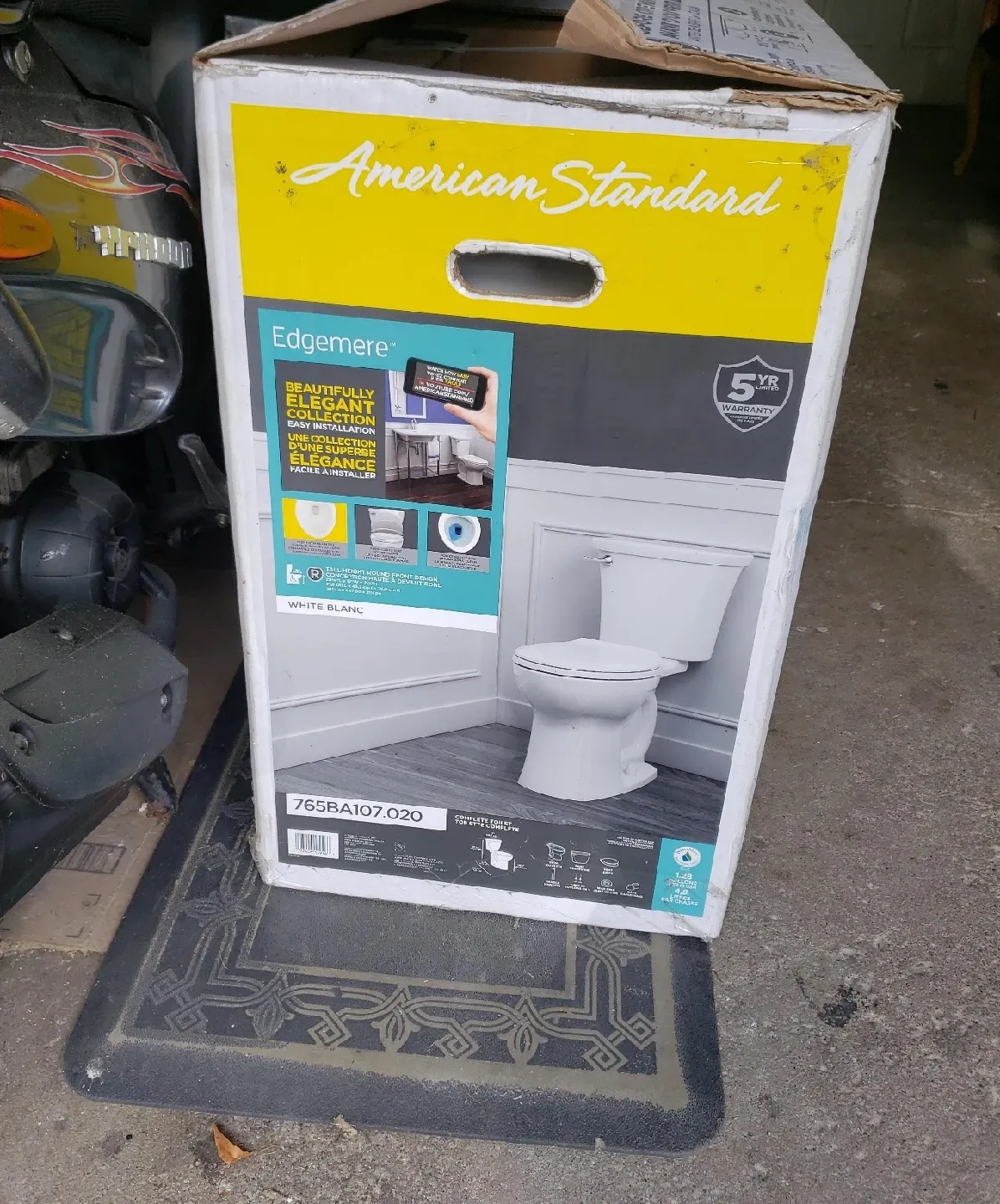 Selling a brand new in box American Standard Edgemere toilet! It's a round front toilet in white. This is a beautifully elegant collection that's easy to install. The dimensions are 28 3/16" L x 17" W x 31 1/8" H