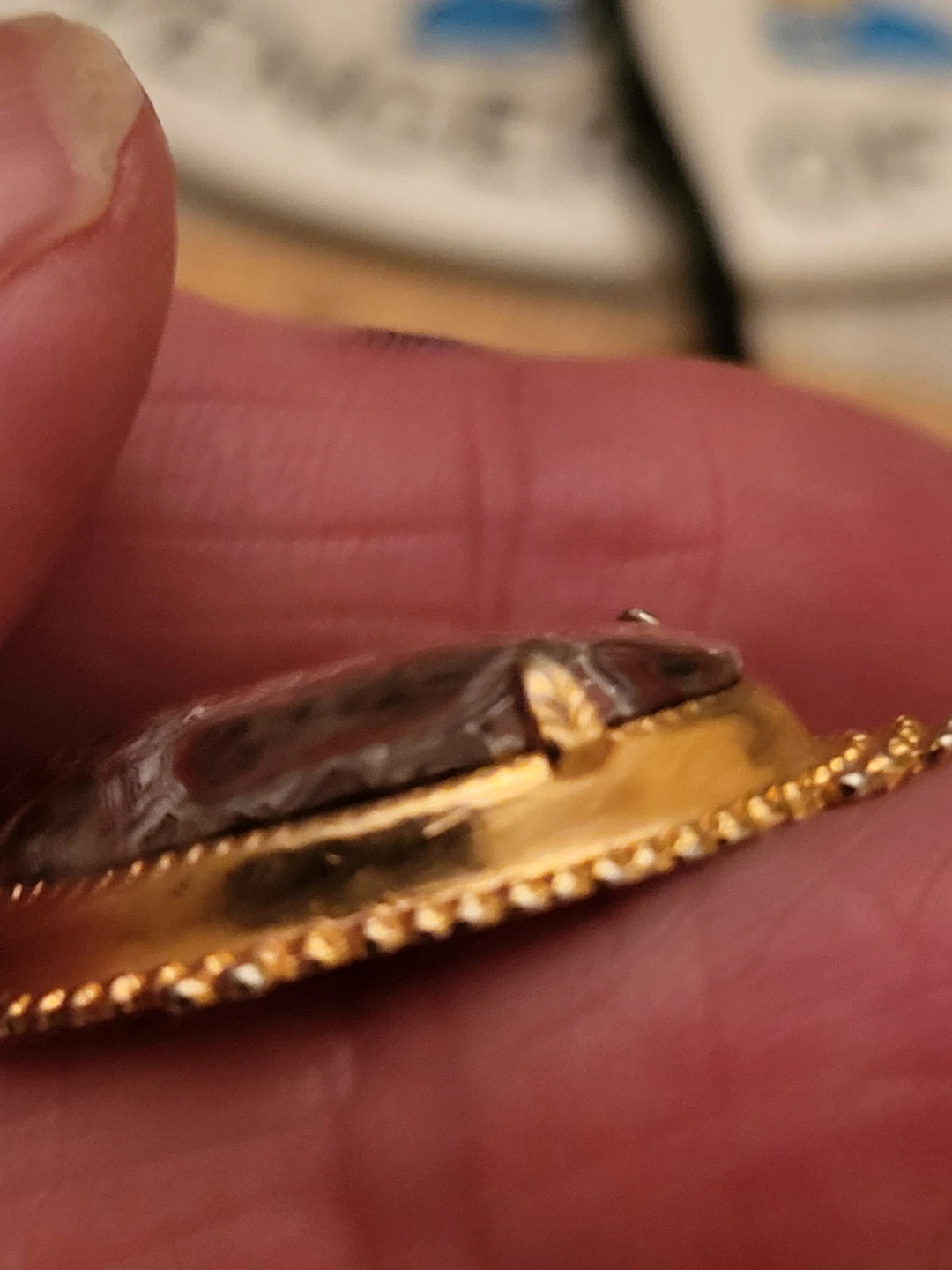 Vintage Agate and Gold-Tone Brooch