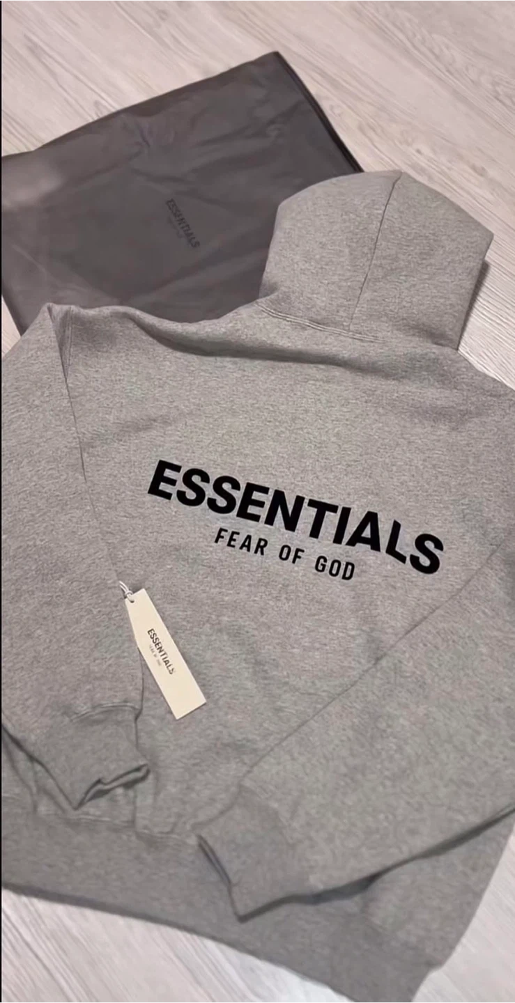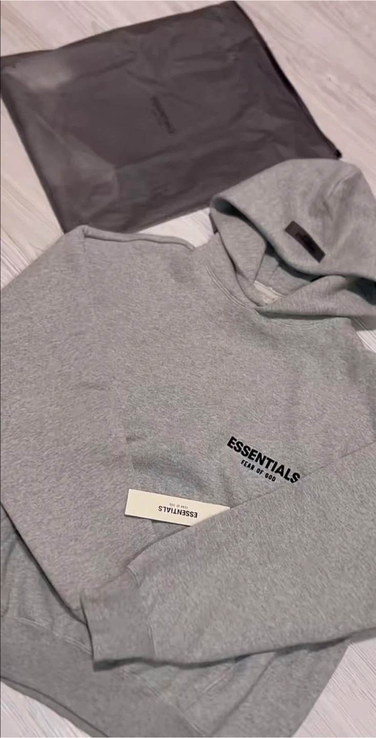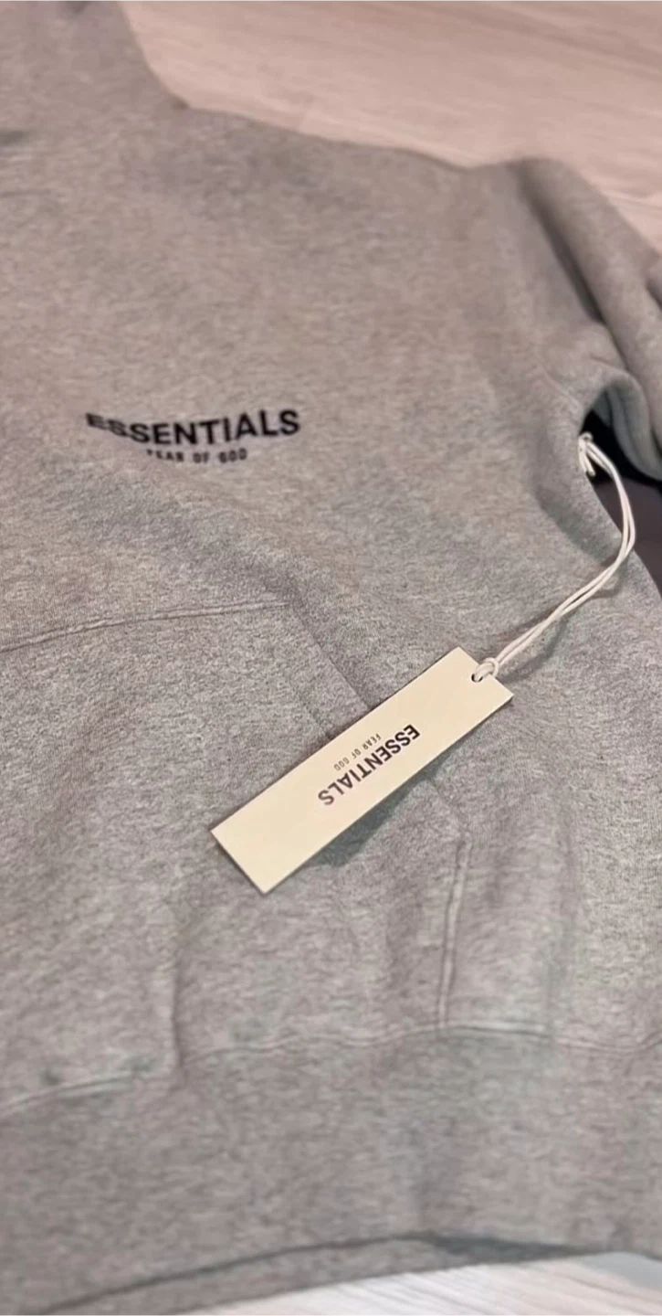 Selling a grey Essentials Fear of God hoodie! It's in great condition and comes with its original packaging. A stylish and comfortable piece to add to your wardrobe!