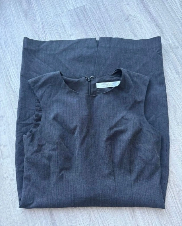 Stylish sleeveless, knee-length Contemporaine dress in grey. Excellent condition. Perfect for professional or casual wear. Asking $30. Similar dresses sell for $25-$40. If the ad is still posted, it is still available!