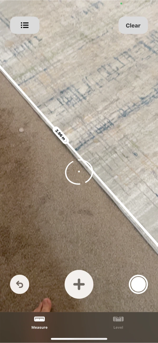 Nice area rug with a distressed pattern. Dimensions are approximately 2.39 m by 2.98 m. It's a light beige colour with blue and grey accents. Adds a cozy feel to any room!