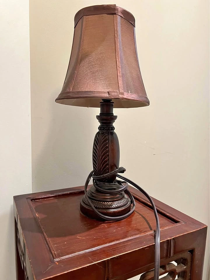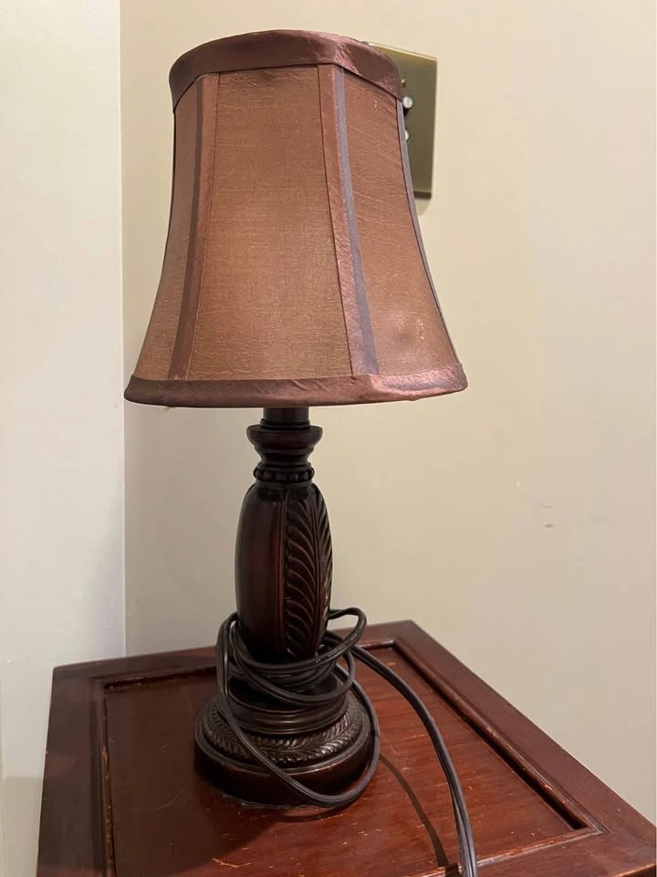 10Small brown lamp Works good Height: 15 inches Pick up only