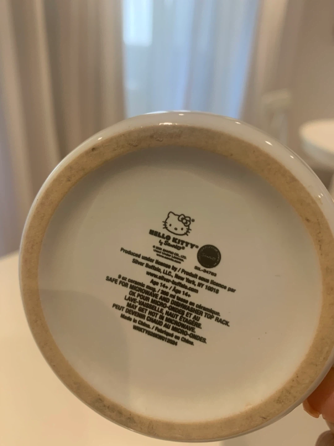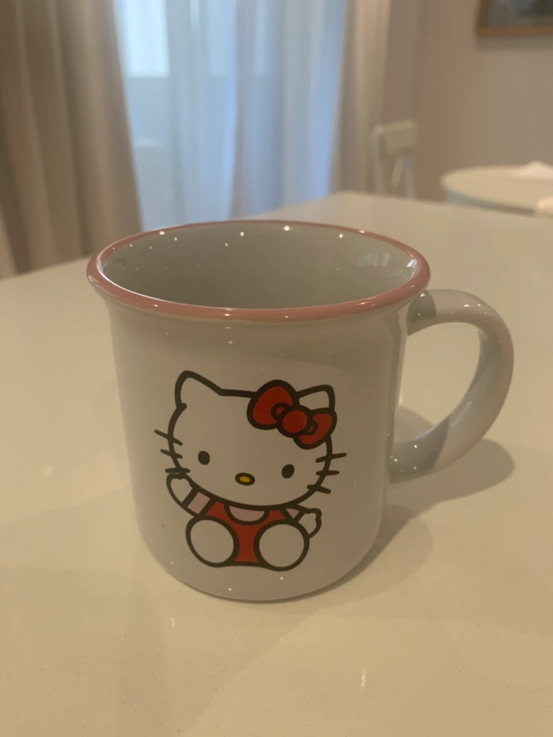 445Here's a cute Hello Kitty mug! It's a 9 oz ceramic mug, safe for microwave and dishwasher top rack. It's in great condition and ready for a new home