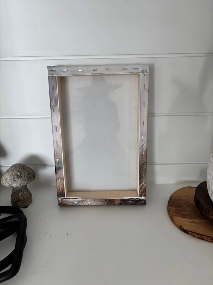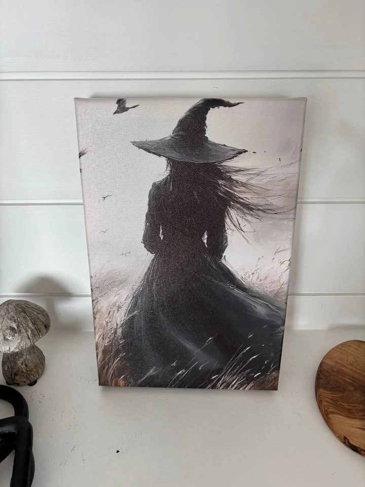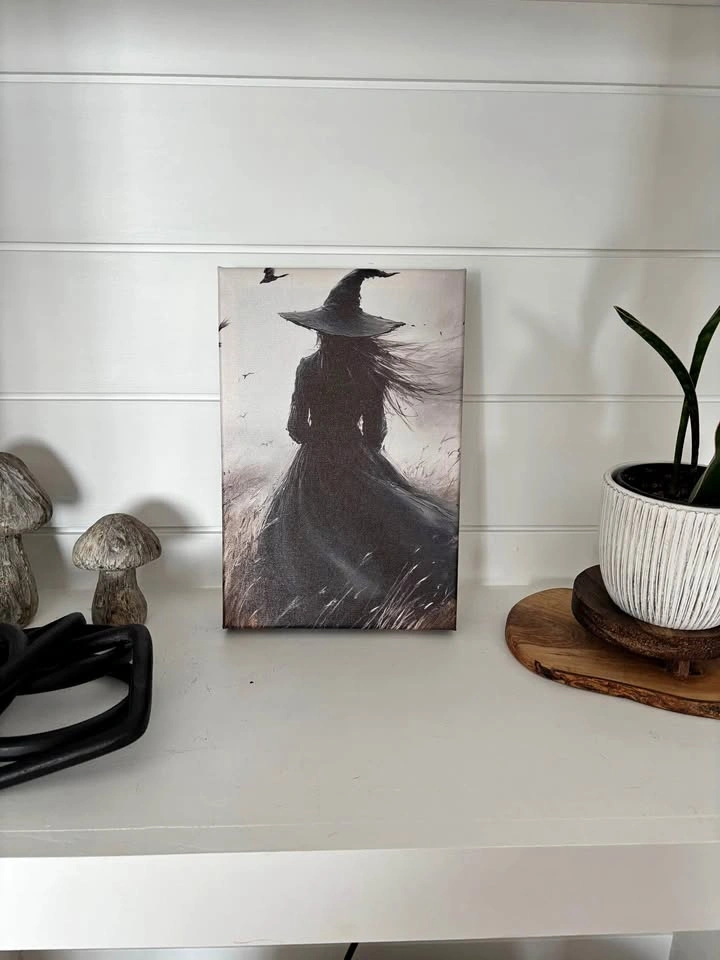 Small meadow witch print on canvas. Framed onto 11 5/8”X7 3/4”x1.5” wooden frame. Perfect size for on a bookshelf or counter top. Will put a hanger on it if you’d like to hang it. Pick up in North Bowmanville near Middle Rd and Northglen Blvd.