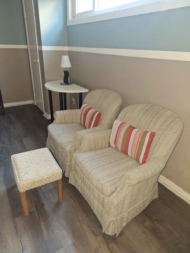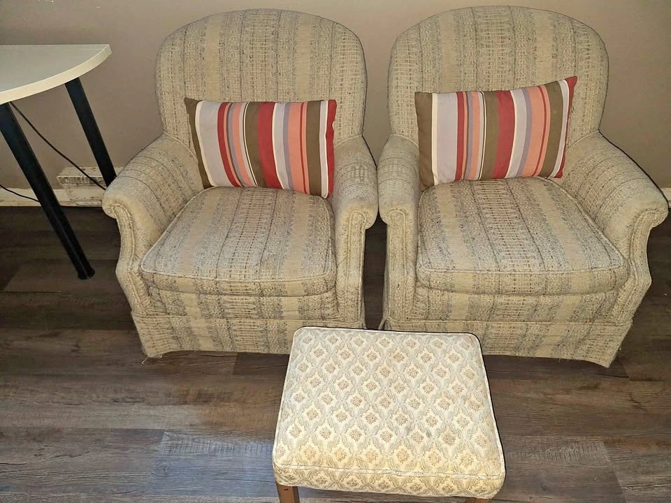 652 used sofa chairs. Good for small or medium room. With leg rest. For pick-up only. Smoke and pet free home. 595 Third Street, London, ON