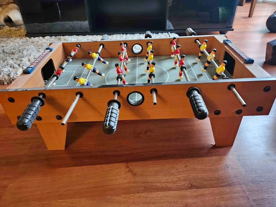 5Small, table top foose ball table. 27x27 inches (including the bars)
