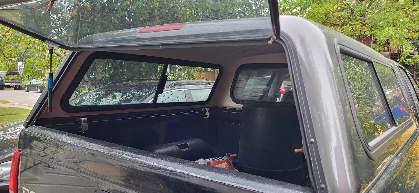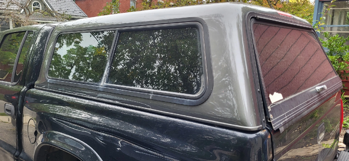 selling my truck cap. nothing fancy, grey, hatch doesn't latch, never used the brake light. It's just a cap for the sake of having a cap. Will sell with all the hardware (4 clamps and one shock to hold up the latch :) roughly 68" long, 64" wide fits my 02 dakota quad cab. can make sure it fits your truck before you buy. make me an offer.