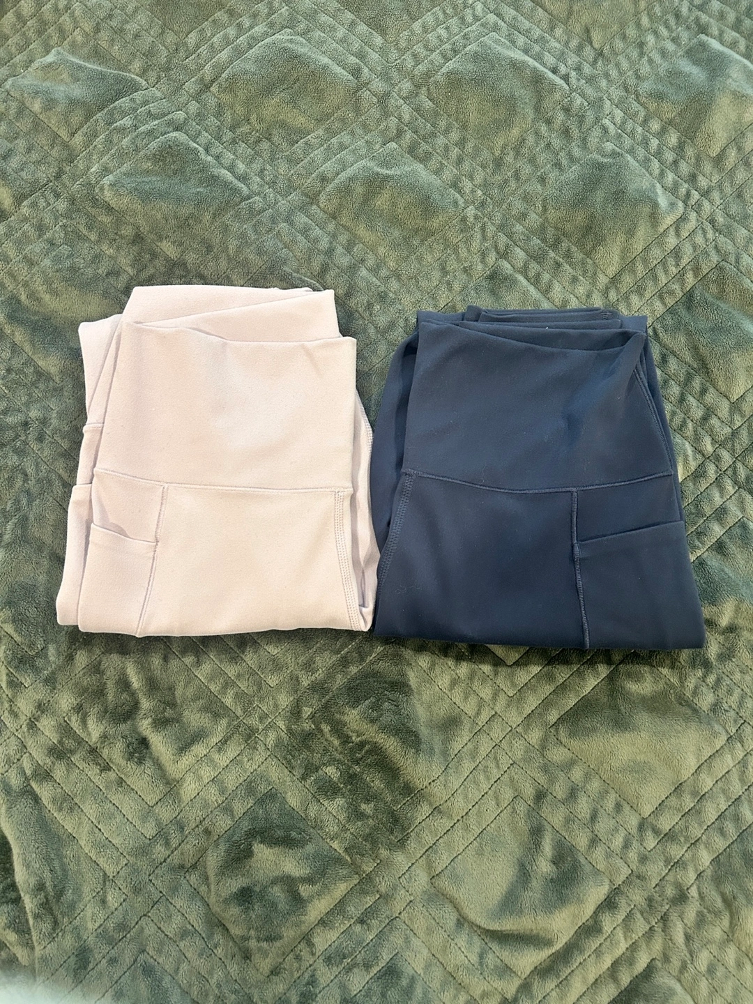 Small Uniqlo AIRISM Soft UV leggings (purple, blue)