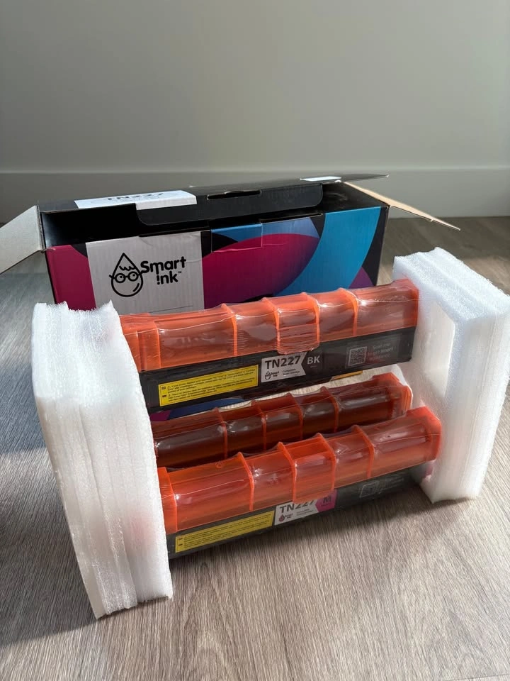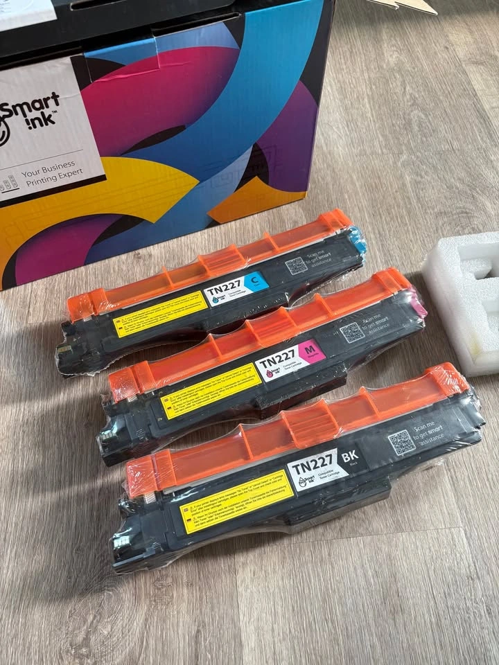 73Compatible Printers: MFC-L3770CDW, HL-L3290CDW, HL-L3270CDW, MFC-L3710CW, HL-L3210CW, HL-L3230CDW, MFC-L3750CDW Package Contents: 1 x Black TN227BK 1 x Cyan TN227C 1 x Magenta TN227M Yellow TN227Y is missing User Guideline + Warranty Certificate Features: High Page Yield: up to 3000 pages (Black), 2300 pages (Color at 5% A4 coverage) Toner Level Tracking with Smart Chip Easy installation – instantly recognized by printers Sharp text and vibrant photos Condition: Brand New – Open Box (Yellow cartridge missing, price adjusted accordingly)
