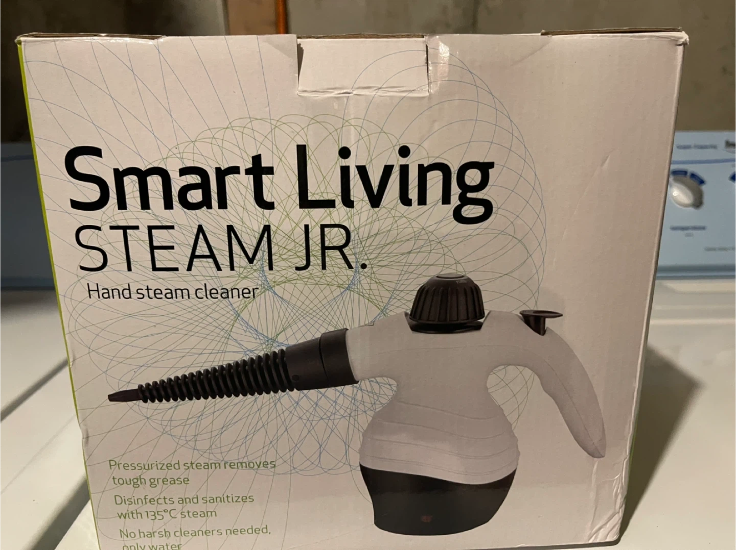 Selling a brand new Smart Living Steam Jr. hand steam cleaner, still in its original box! This handy little device uses pressurized steam to remove tough grease and disinfects with 135°C steam. Plus, no harsh cleaners are needed, just water! Great for quick clean-ups around the house