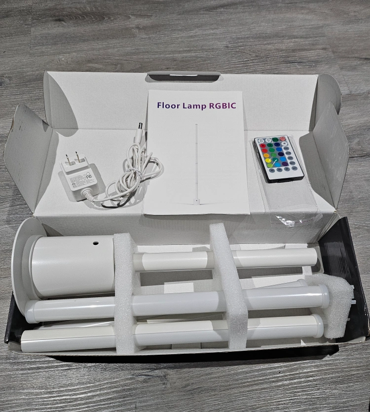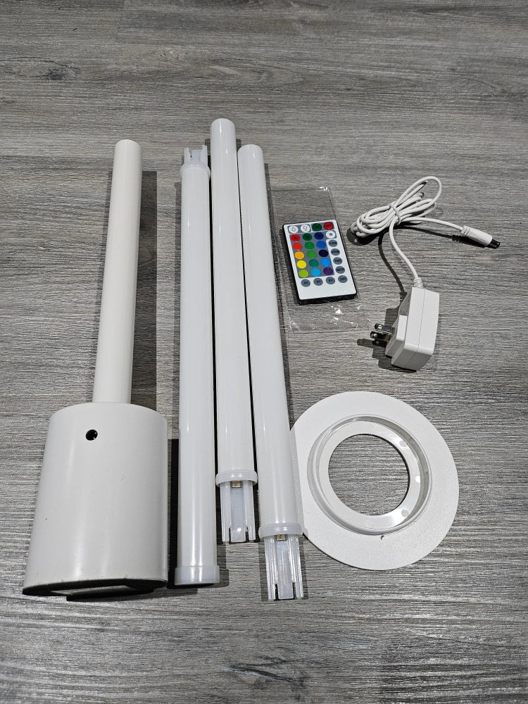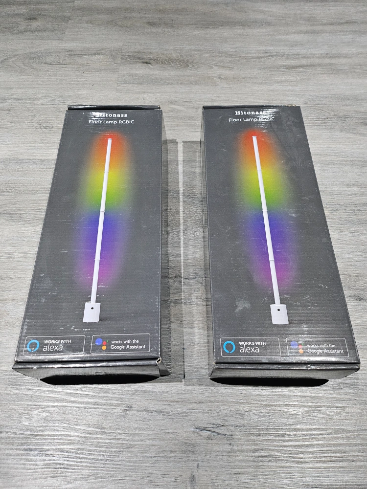 Smart floor lamps. RGBIC colour changing. Includes remote control, power adapter, and all necessary parts. Works with Alexa and Google Assistant. Sleek, modern design. Perfect for home décor. Qty - 2 available Each $ 50