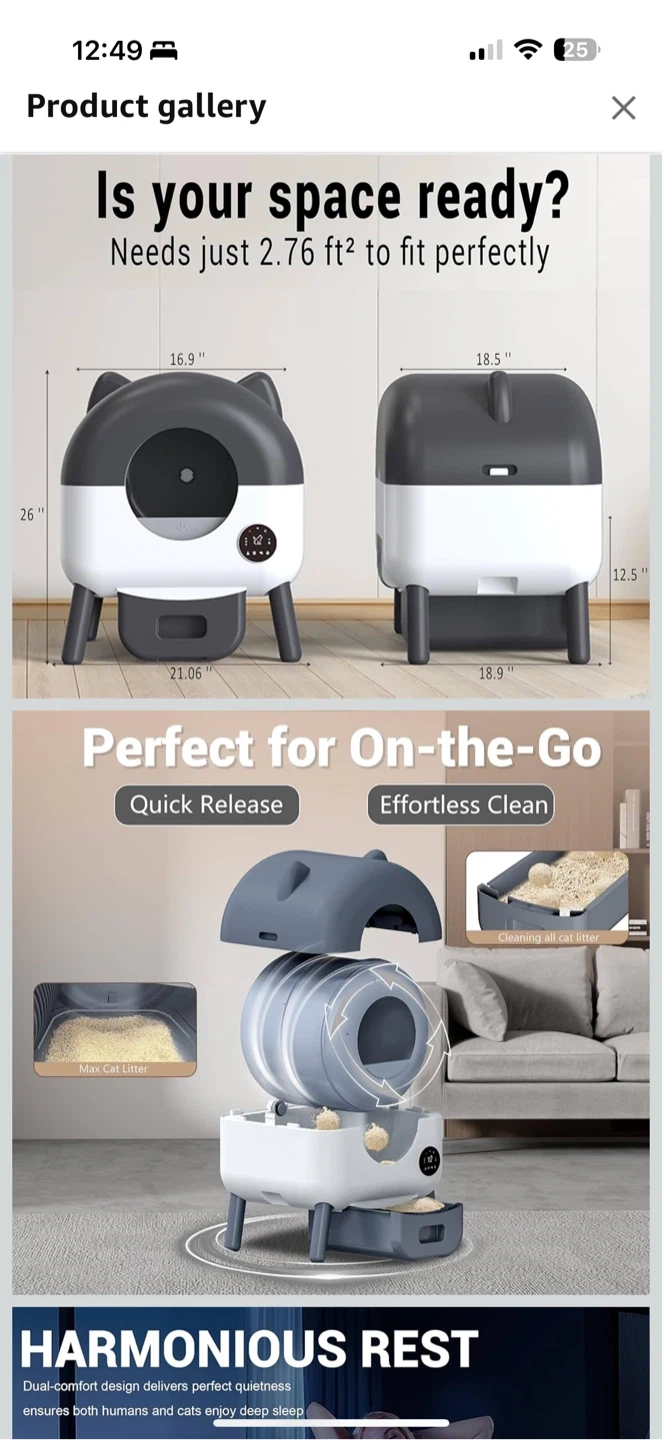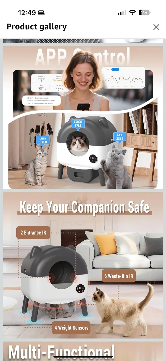 Smart Self-Cleaning Cat Litter Box with WiFi App โ White Condition: New (open box, never used) Smart automatic litter box that makes cleaning effortless. Connects to the Tuya Smart app for remote control and monitoring. Perfect for multiple cats or busy owners. ๐ฆ Includes: โข Litter box unit โข Power adapter โข Instruction manual โข Built-in LED light and touch control panel โ๏ธ Features: โ Self-cleaning rotating drum โ Odor control & waste drawer โ WiFi app control (Tuya Smart) โ Safety sensors for pet detection โ Quiet operation โ Easy to assemble & clean ๐ฒ Price: $230 ๐ Amazon price: $351.49 ๐ Pickup in Waterloo
