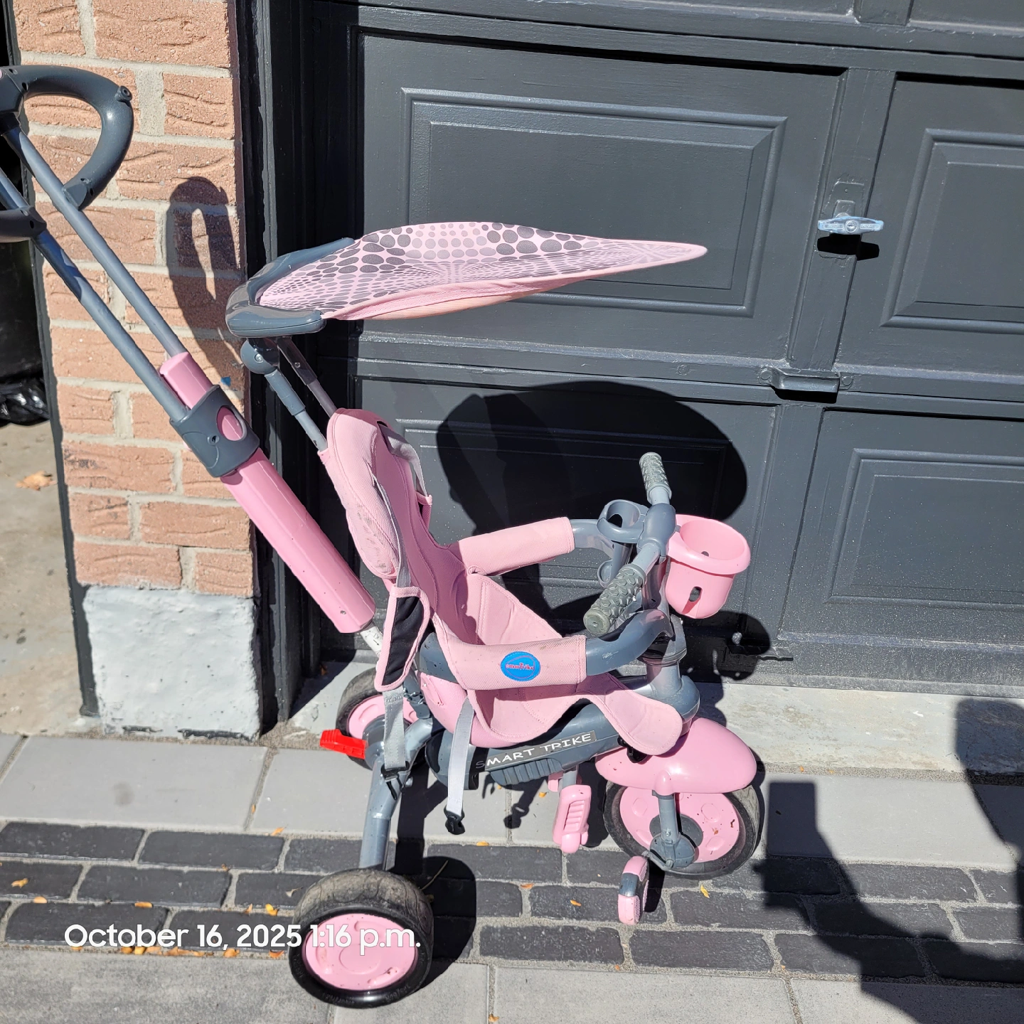 Selling a pink Smart Trike, perfect for toddlers! It's in great condition and ready for new adventures. This tricycle is designed to grow with your child, offering a comfortable and safe ride. It features a sun canopy to protect from the sun and a sturdy frame for stability. Great for outdoor fun! 50.00 OBO