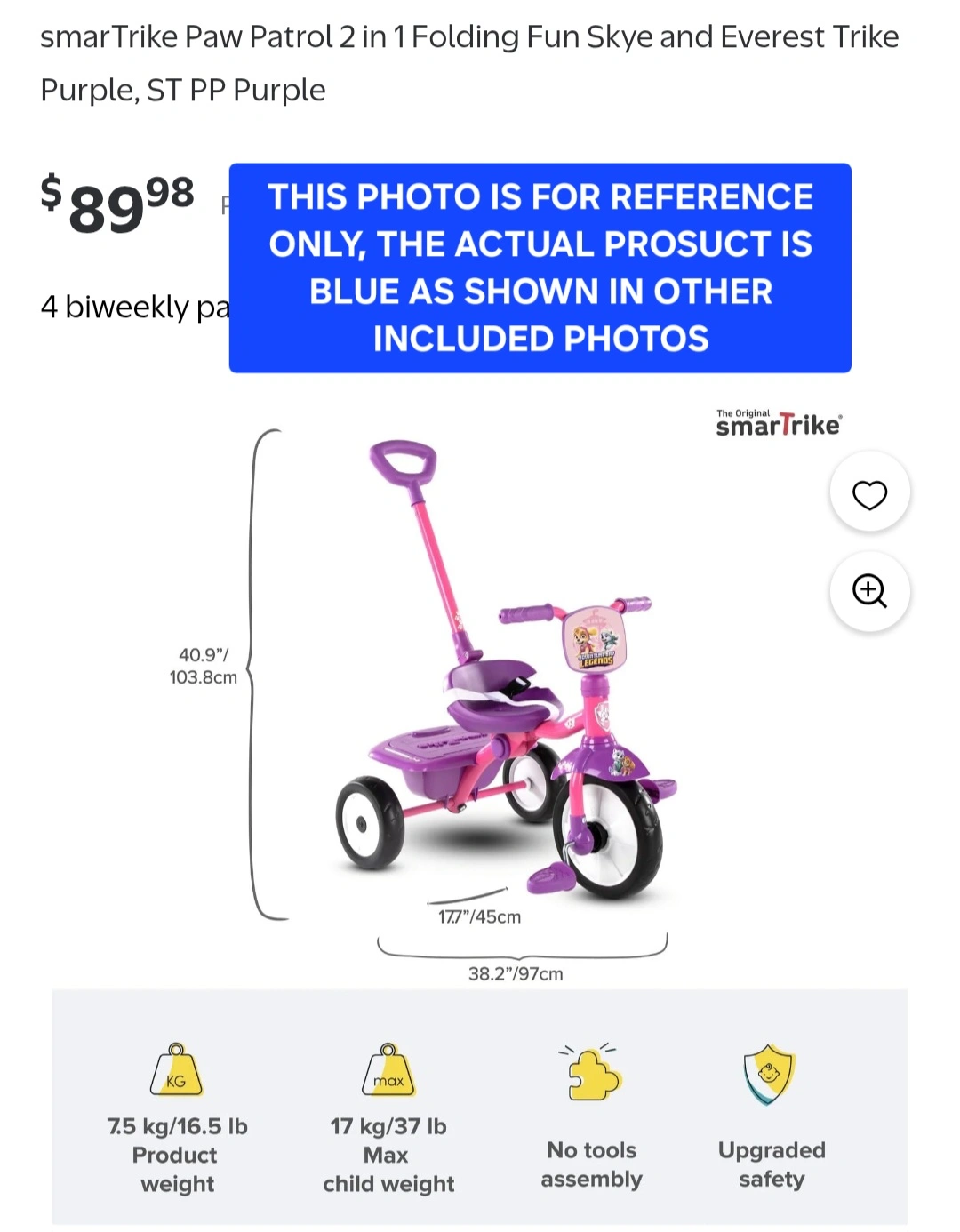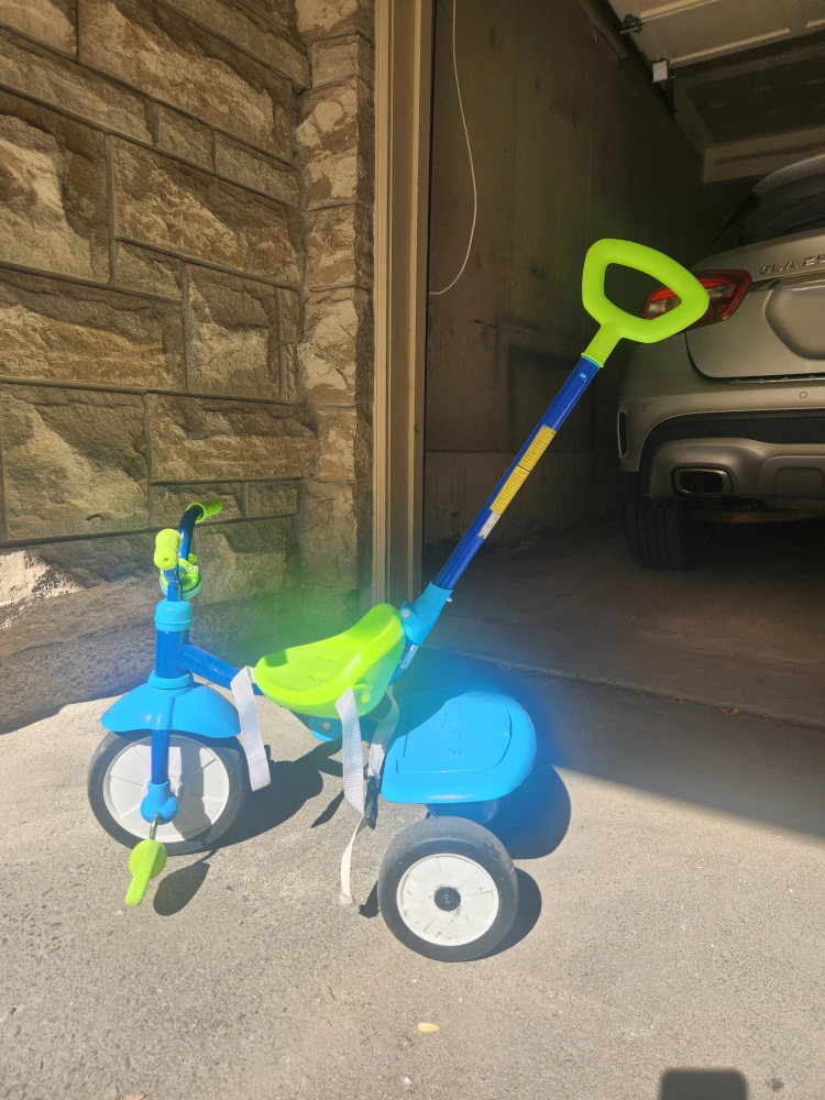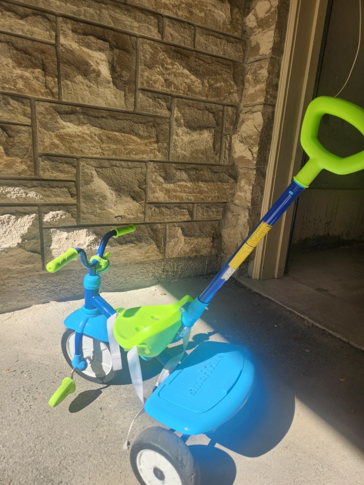 Selling a smarTrike 2-in-1 Folding Fun Trike in blue! This trike can be used as a parent-controlled stroller and later as a tricycle for your little one. It's in great condition and ready for a new home. - Product weight: 7.5 kg/16.5 lb - Max child weight: 17 kg/37 lb - No tools needed for assembly - Upgraded safety features