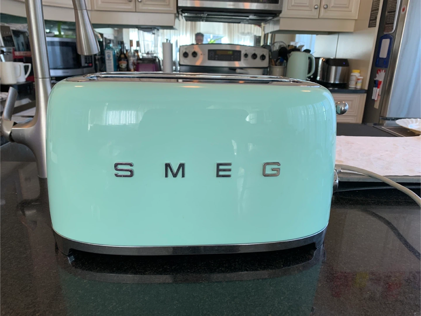 1000+Looking to add a pop of colour to your kitchen? This SMEG 2-slice toaster in pastel green is perfect! It's in great condition and ready to make your mornings brighter. It's a stylish and functional addition to any countertop