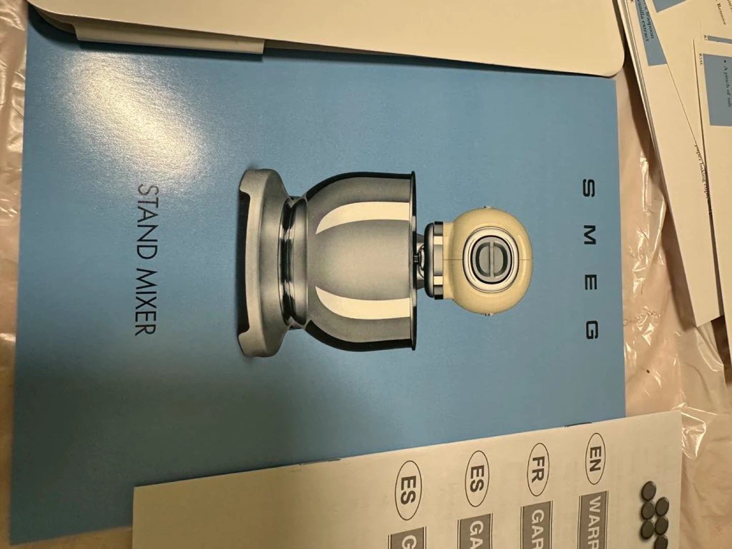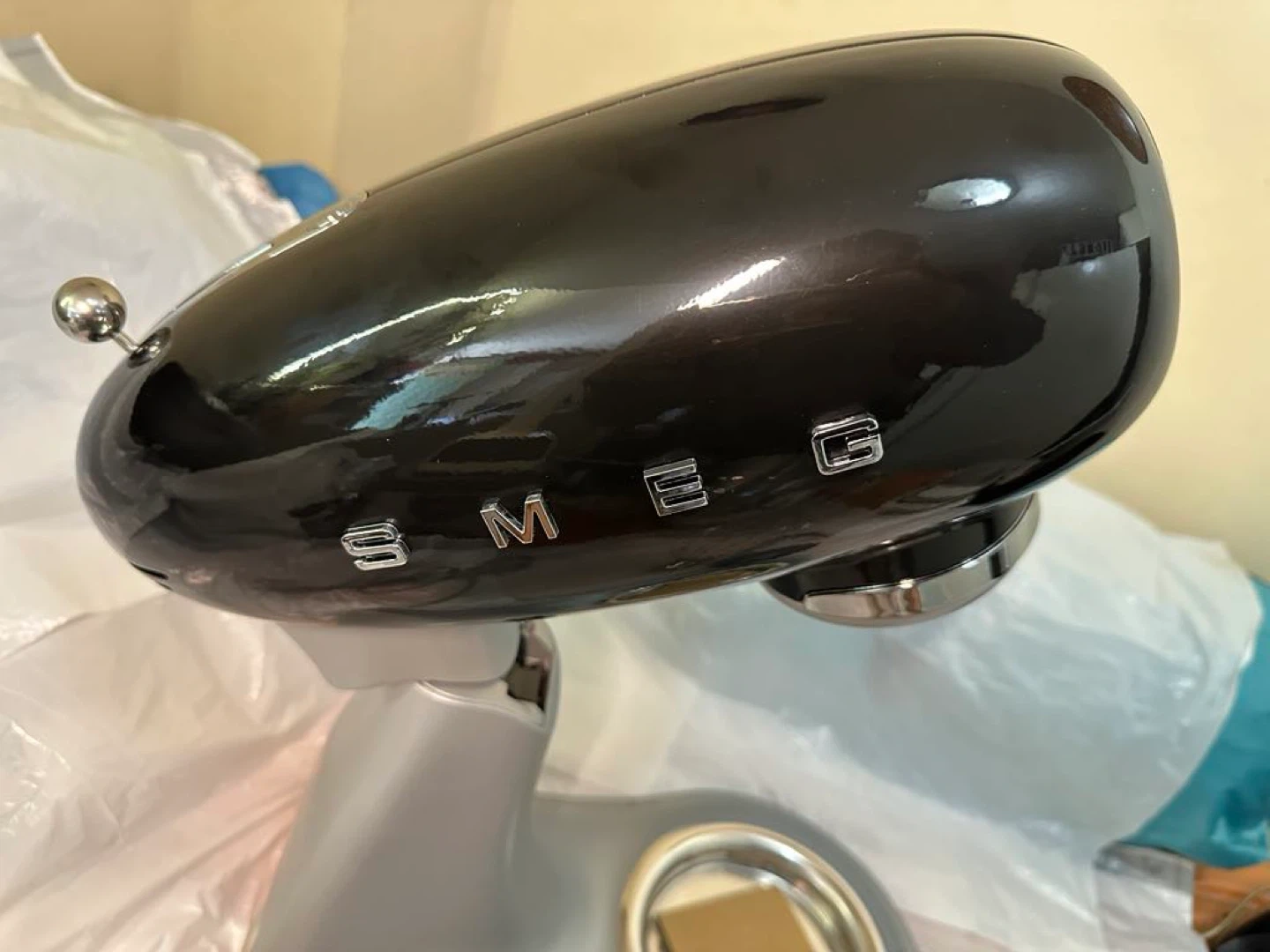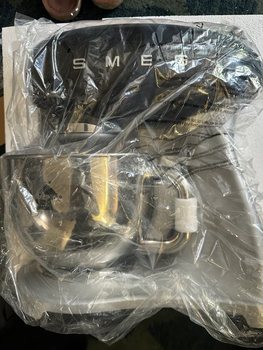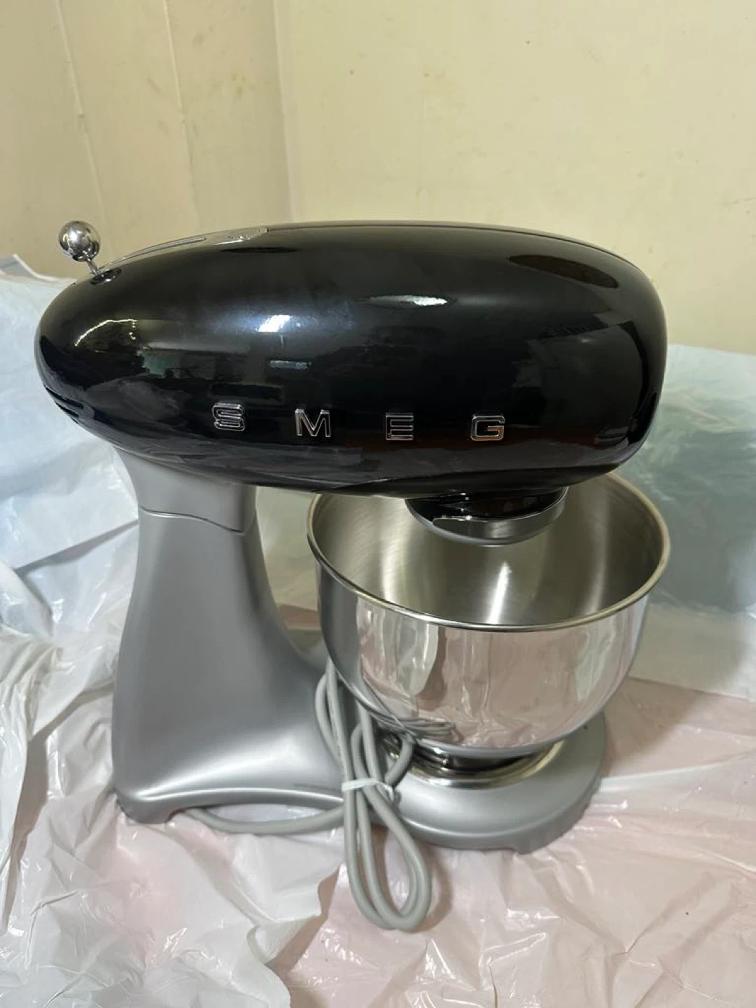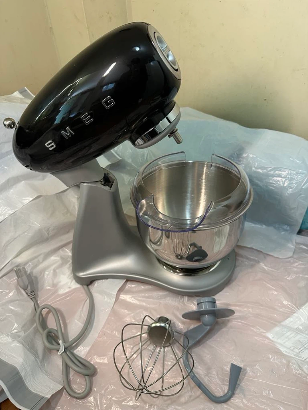 Selling a Smeg stand mixer in black. It comes with all the attachments you see in the pictures, including the whisk and dough hook. It is in good condition and ready to help with all your baking needs!