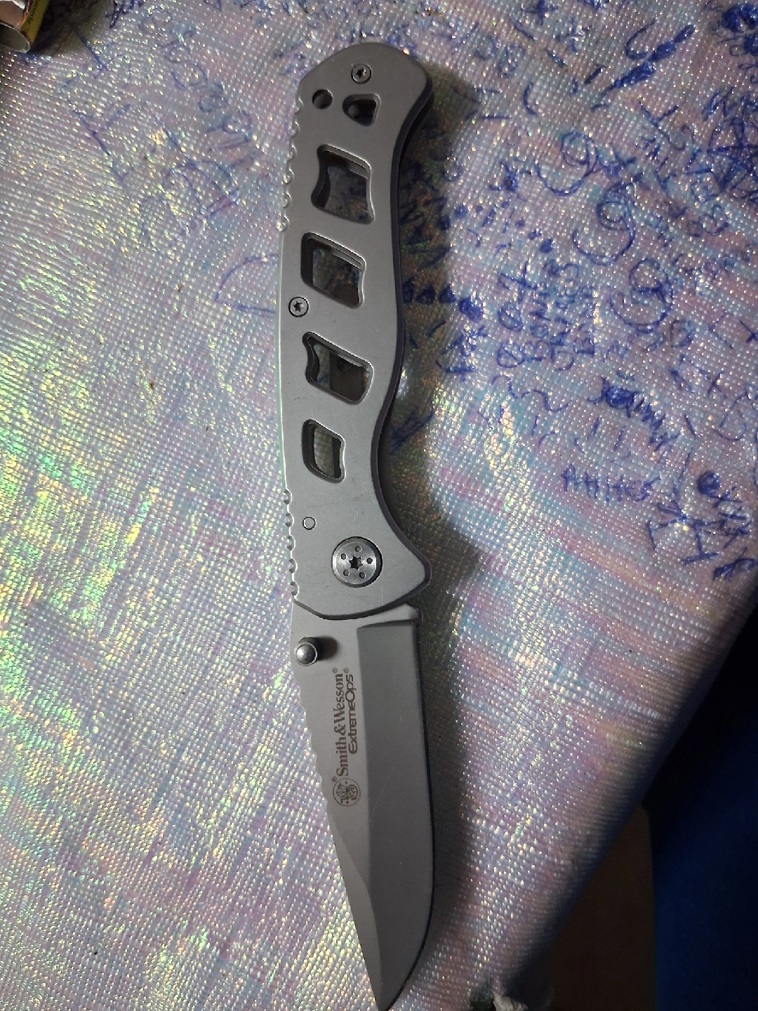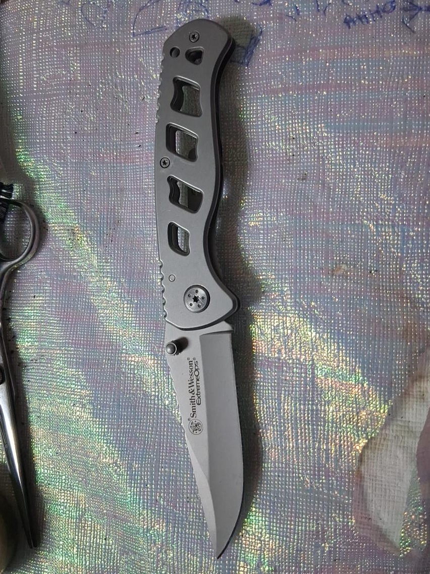 Selling a Smith & Wesson Extreme Ops folding knife. It's in excellent condition like new barely used and ready for a new owner! Perfect for everyday carry or outdoor adventures. The blade is sharp and the handle provides a comfortable grip. 30$ OBO. Cash only. Pick up only.