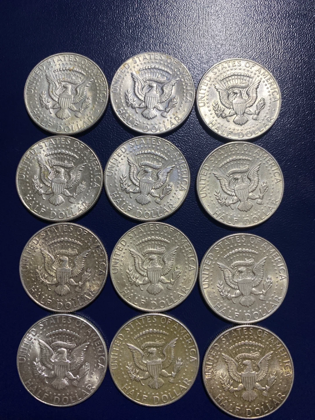 Collection of 12 silver Kennedy Half Dollar Coins