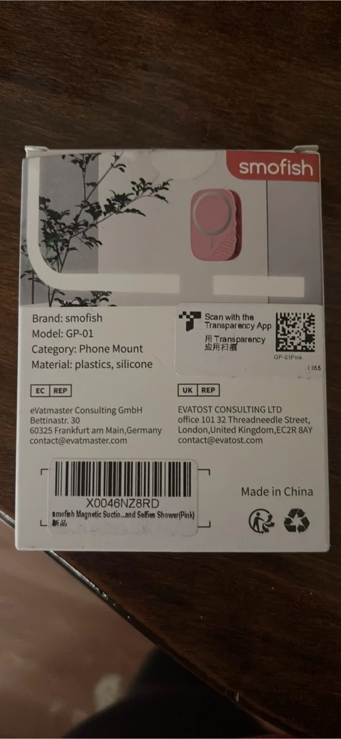 Selling a Smofish silicone suction cup phone mount! It's brand new in the box. The model is GP-01. The mount is made of plastics and silicone. It features a design for more interesting makeup.