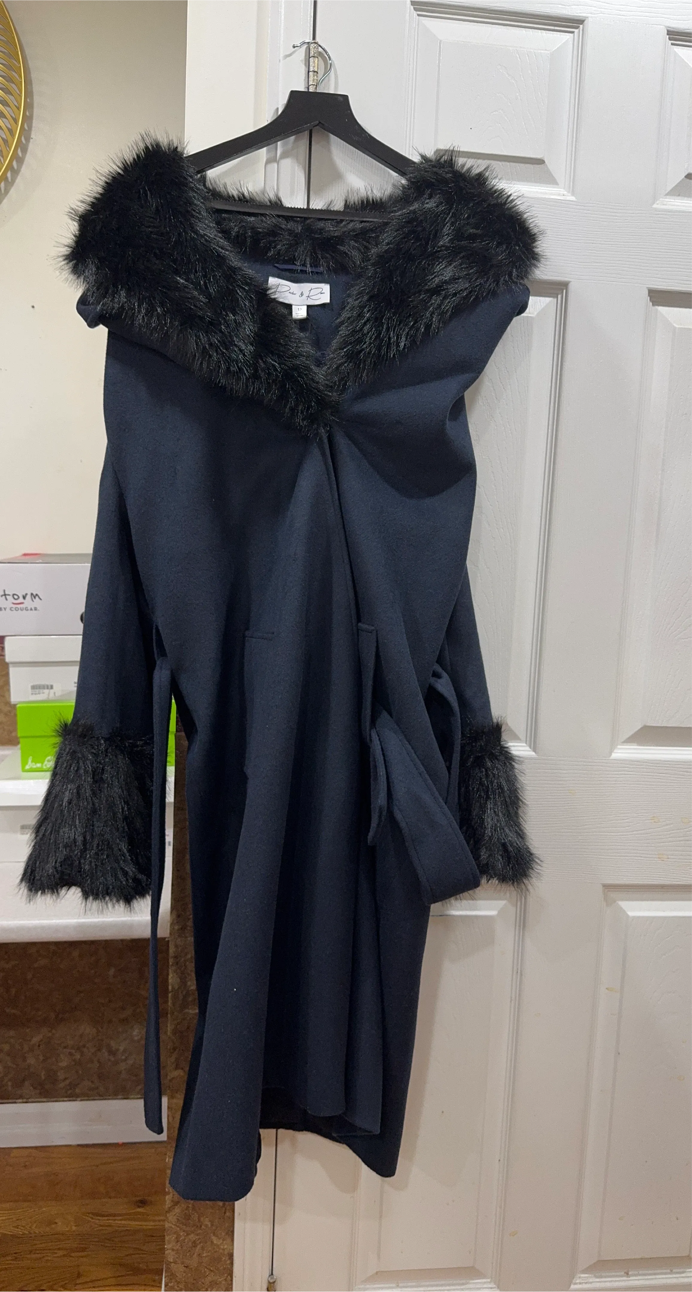 🧡Bonnie & Hyde Faux Fur Trimmed Navy Cape