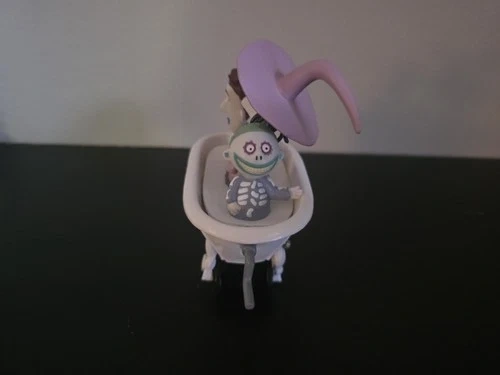 Vintage Lock, Shock & Barrel Roll Along Toy from Disney’s The Nightmare Before Christmas, produced in 1993. This classic piece features Lock, Shock, and Barrel riding together in a bathtub-style rolling cart with a push handle. A fun and iconic early collectible from the original Nightmare Before Christmas merchandise line. Pre-owned and in very good vintage condition. Figures and cart are intact with light wear consistent with age. Paint remains clean and detailed. A great display piece for fans and collectors of Nightmare Before Christmas. Please review all photos for exact condition.
