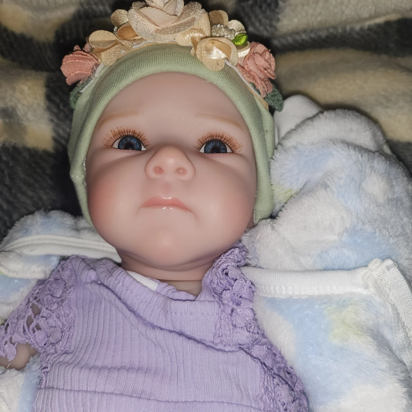 Realistic reborn baby doll. Includes pacifier. Soft, vinyl body. Suitable for collectors or children. Baby will come home in a sleeper (footed pjs) with a headband. Baby is a girl and anatomically correct.