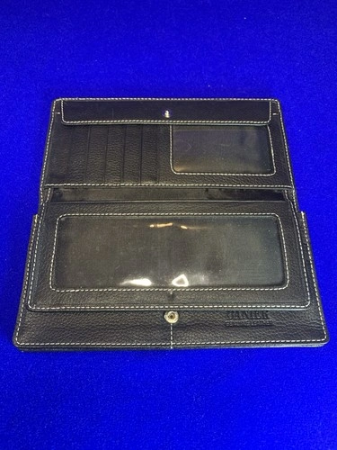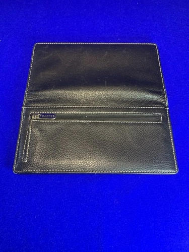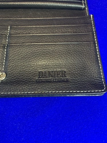 Upgrade your everyday carry with this authentic Danier Genuine Leather Wallet / Organizer, crafted from high-quality pebbled leather with contrast stitching. Danier is known for its premium leather goods, and this piece delivers both durability and classic style. This item is in excellent pre-owned condition, clean inside and out, with all compartments fully functional. A perfect accessory for travel, business, or everyday use. Features: Genuine Leather (Danier stamped logo inside), Stylish Black Pebbled Finish, High-contrast stitching for a premium look, Multiple Card Slots – ideal for credit cards, ID, or business cards, Large Clear Window Section – great for documents, passes, or photos, Additional Transparent Full-Length Pocket, Snap Closure for secure storage, Interior Zip Pocket on the Back Side – perfect for cash or receipts, Lightweight and slim – easy to fit in a bag, purse, or briefcase. Approximate Measurements: Closed: ~9” x 4.5”, Opened: ~9” x 9”. Condition: Pre-owned but in excellent shape, Leather is clean with minimal signs of wear, Inside fabric lining is clean, Stitching tight and intact, No tears, rips, or damage, All compartments open and close smoothly. Please review all photos — they show the exact item you will receive. Quality item from a smoke-free home. Feel free to message me with any questions!