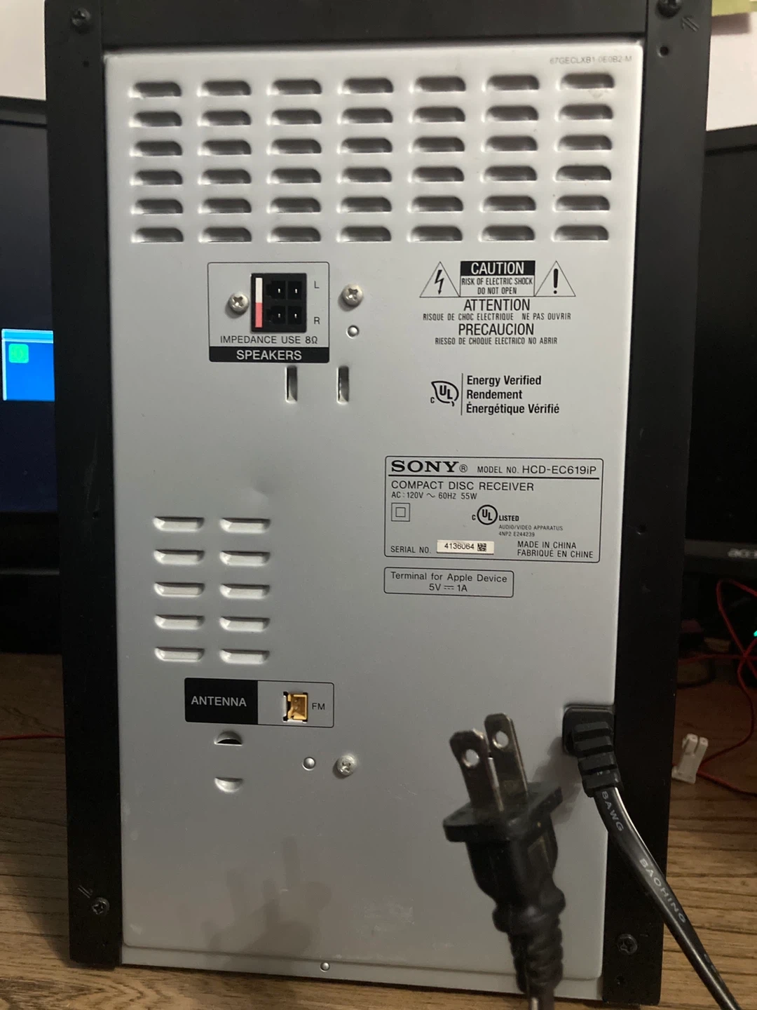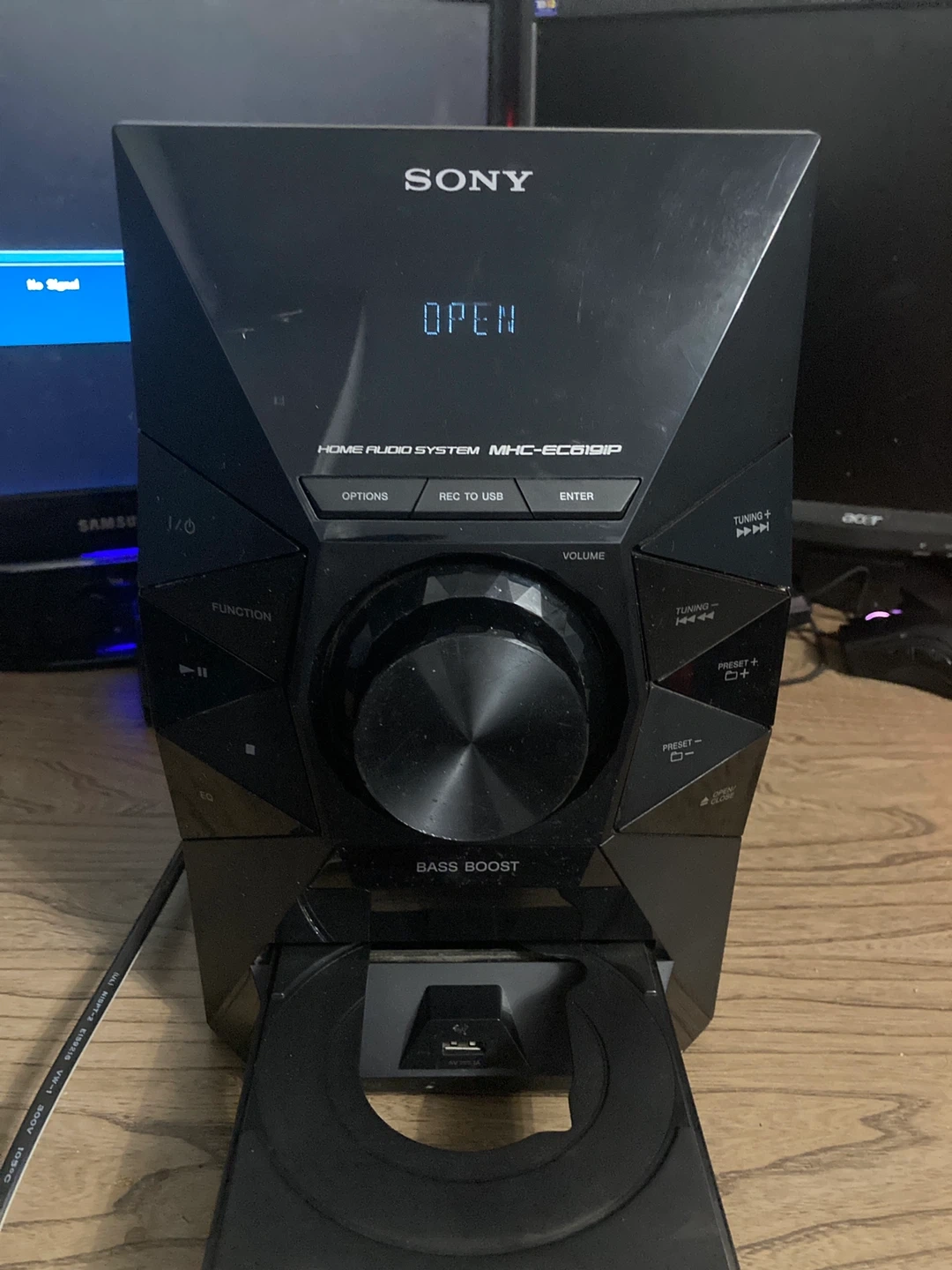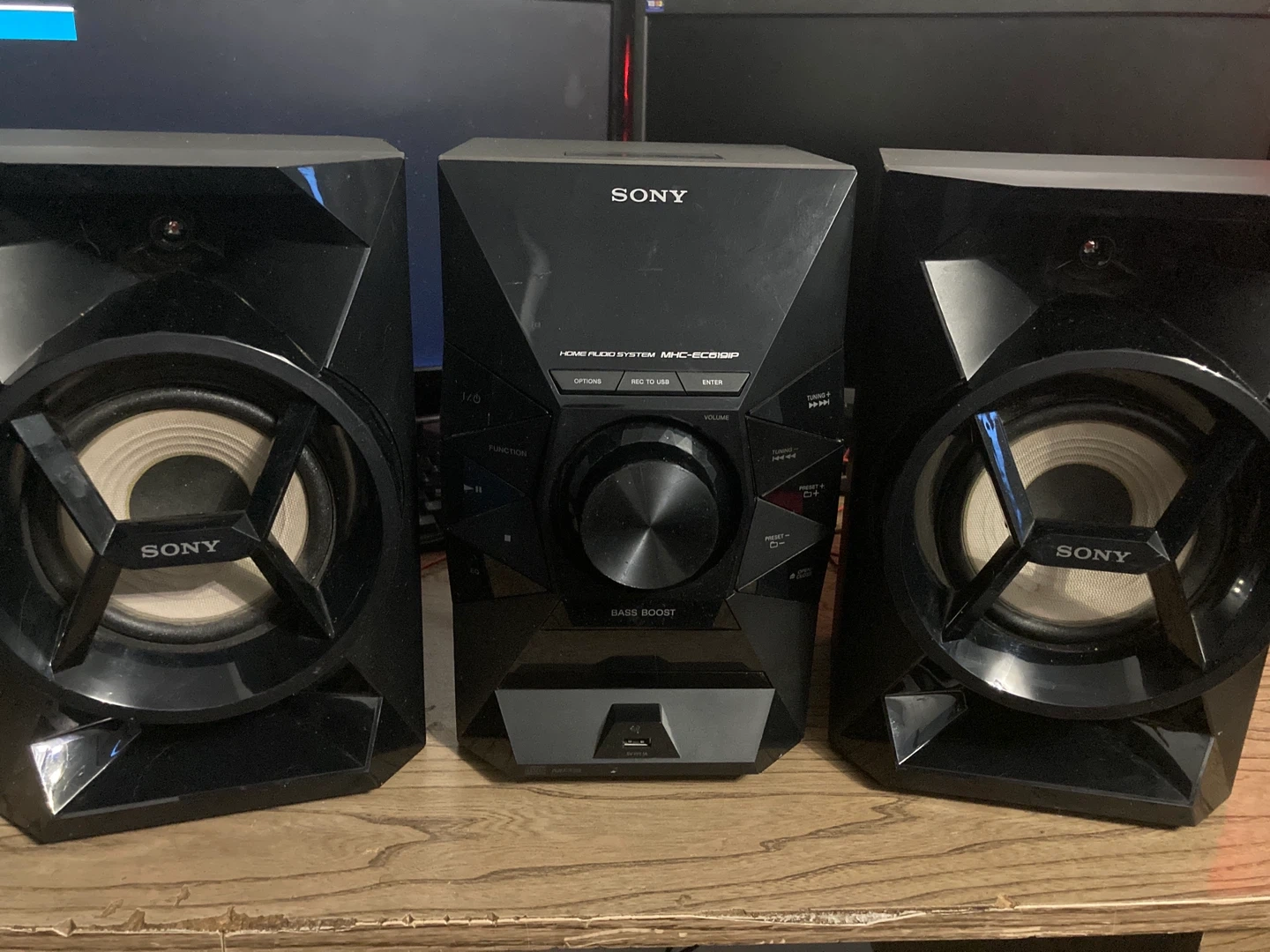 Selling a Sony MHC-EC619iP home stereo system has a few dings and scratches but is in good working condition.