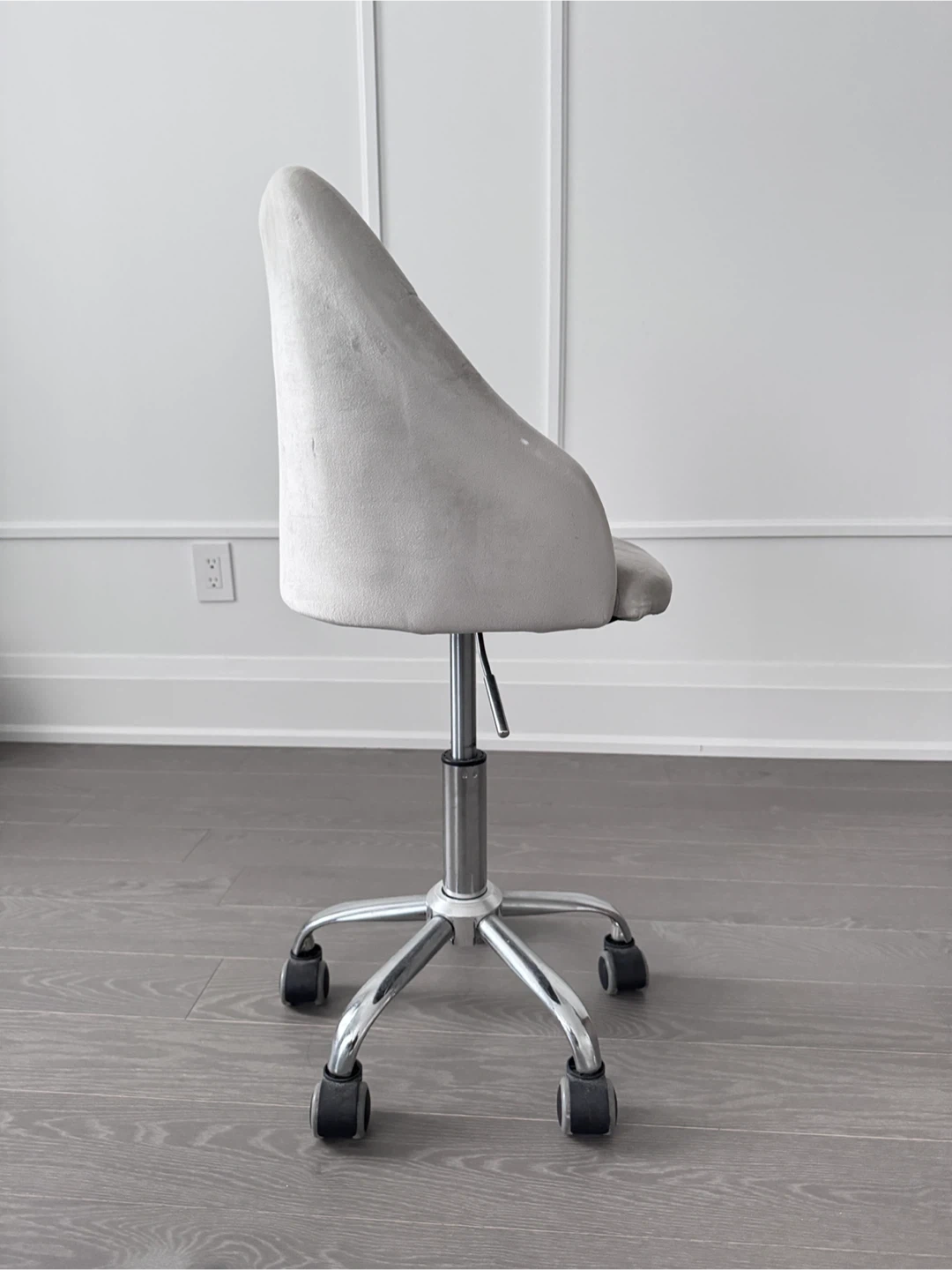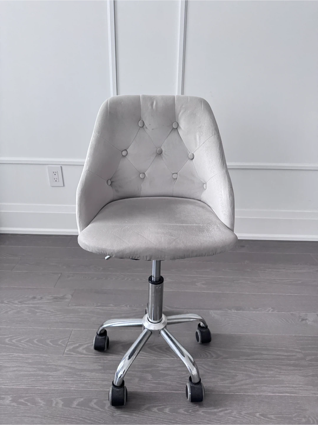 Selling a comfortable small grey velvet swivel chair! It's in great shape and ready for a new home.