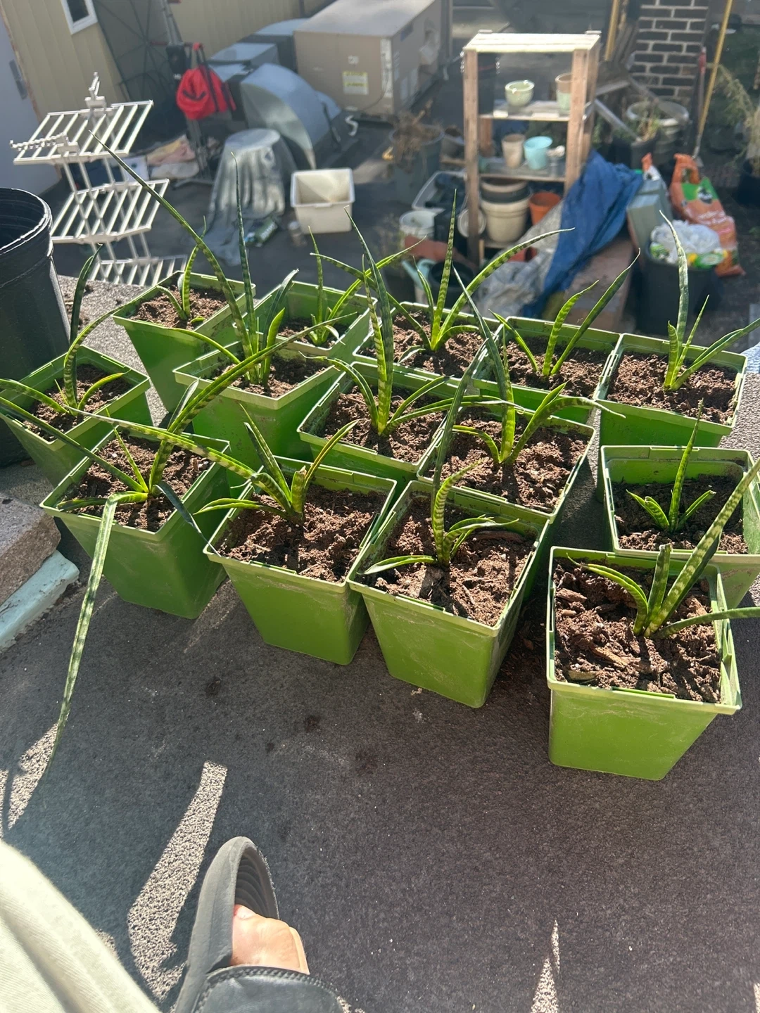 I have a snake plant in a green pot for sale! It's a great way to add some greenery to your home or garden. Easy to care for and looks great!