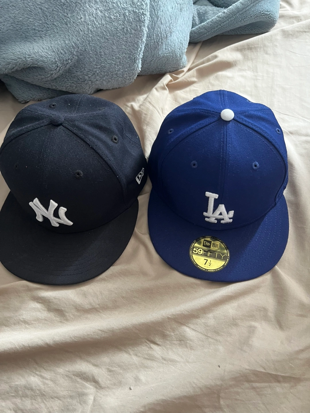 10New York Yankees and LA Dodgers snapback cap size 7.5. 45 each or 80 for both, original price is $80 each