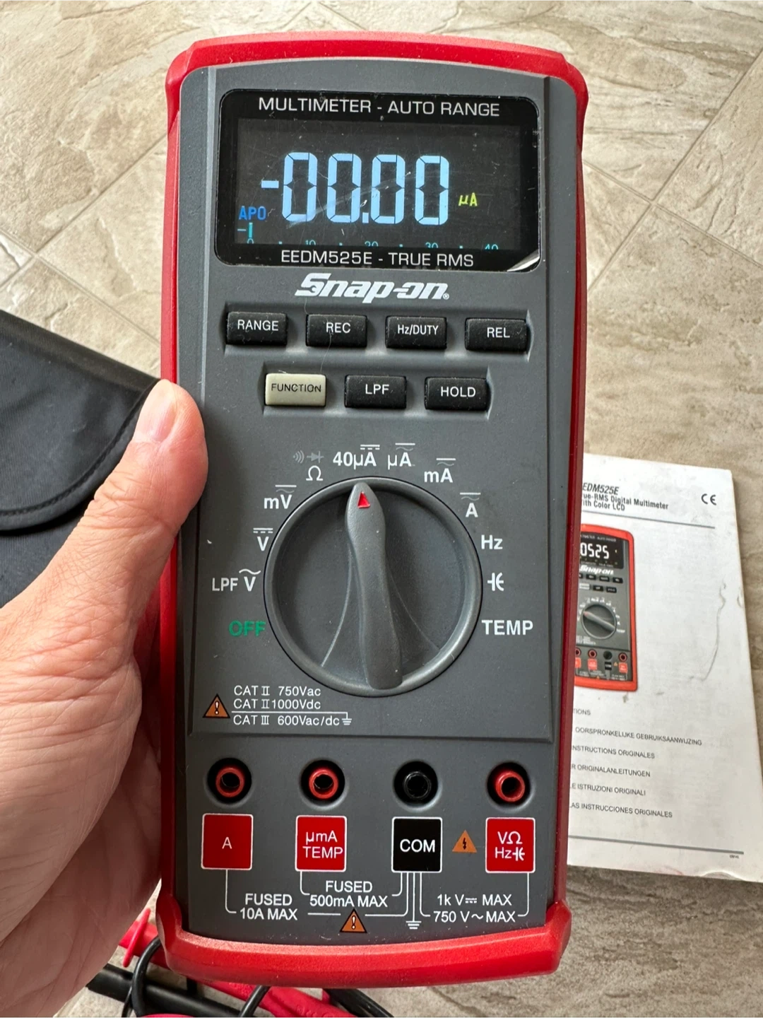 Selling a Snap-on EEDM525E True RMS Digital Multimeter! This multimeter is in great shape and ready for use. It comes with the carrying case and original instructions