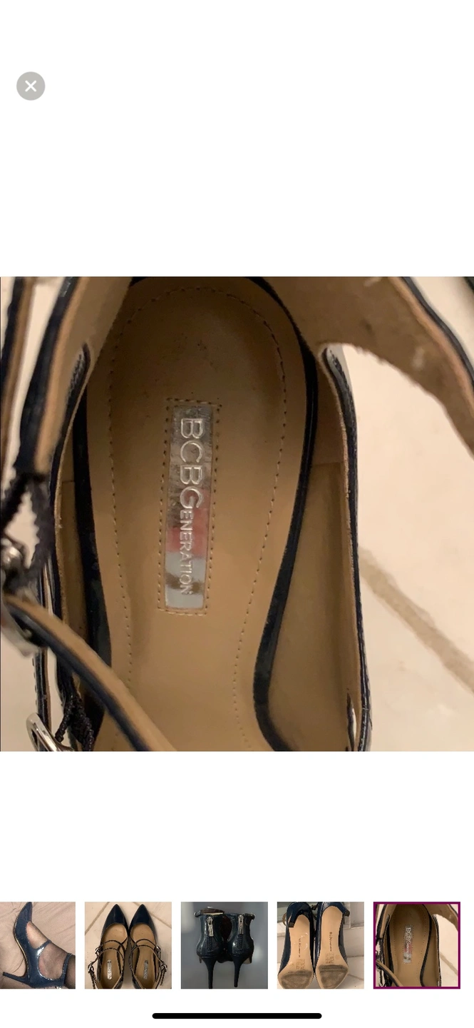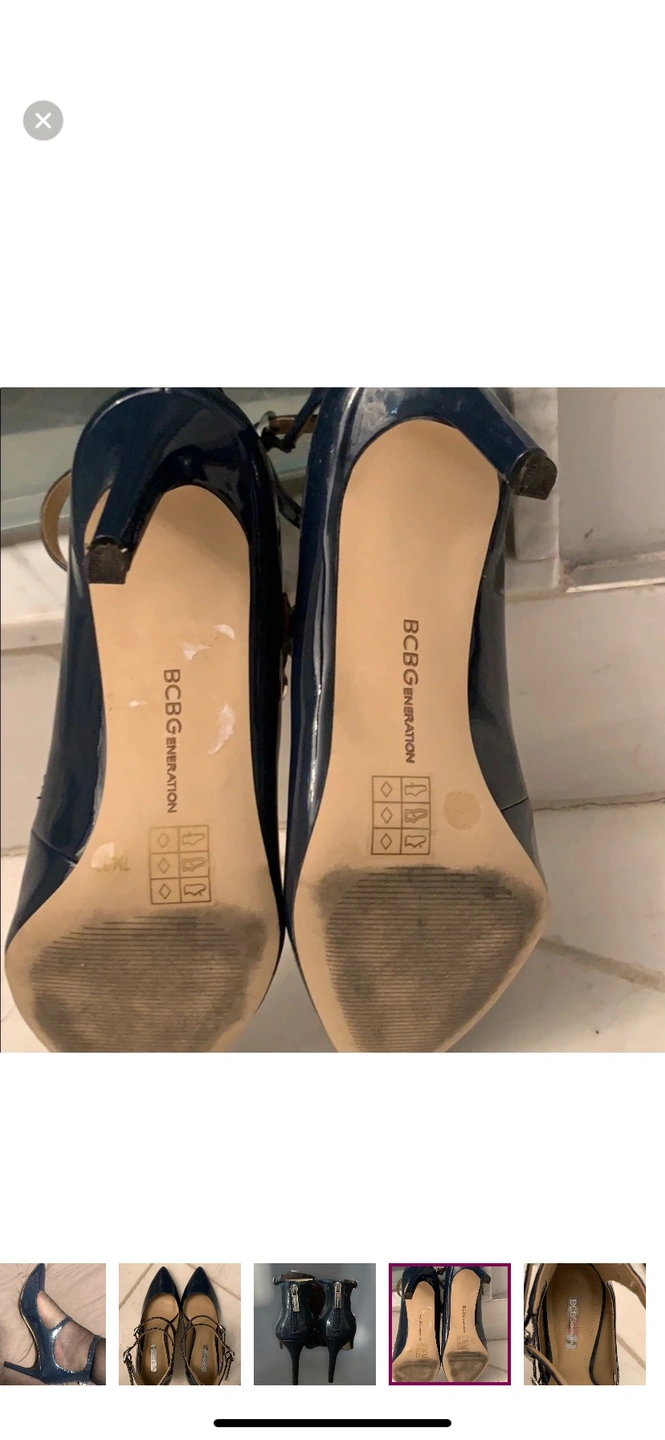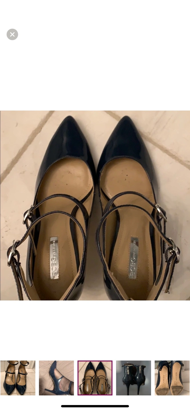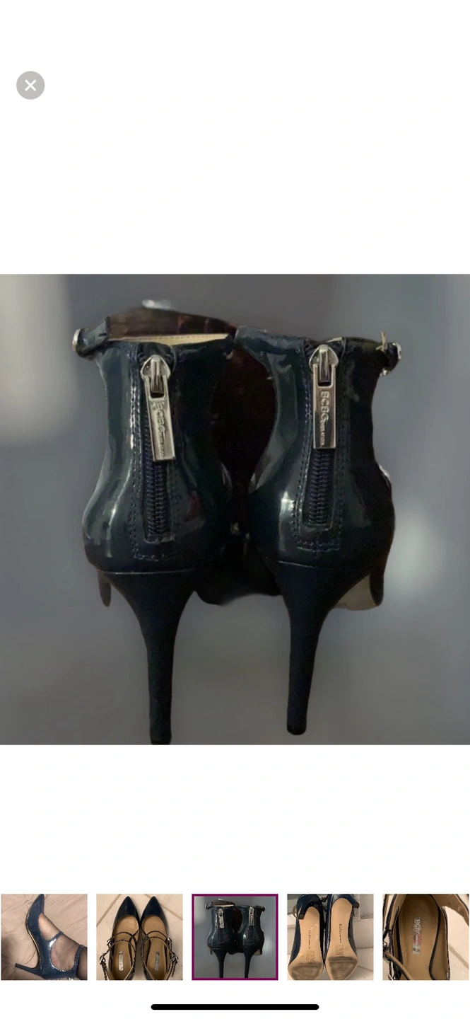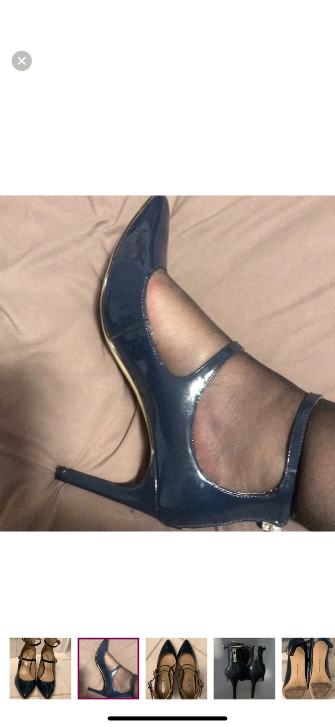Navy blue heels with double straps and a pointed toe. Back zipper closure. Very sexy shoe.
