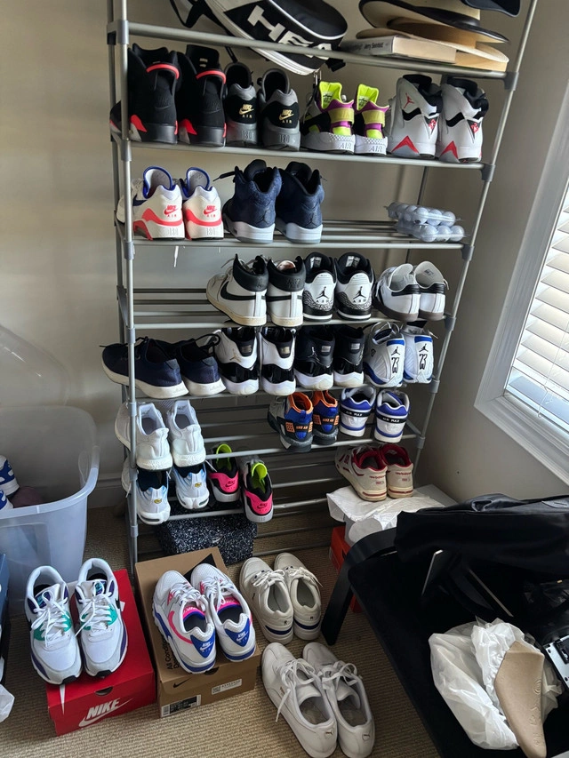 Will sell the entire selection for $1000. Would prefer to sell all at once so priority will be given to this. All are VNDS and only worn in the summer unless stated otherwise Jordans: Jordan 3 infrared 10.5 - 190$ light wear Jordan 5 AMM dawn 10.5 - 250$ Jordan 5 navy 10 - 150 light wear 120$ Jordan 6 bred - 10 220$ Jordan 7 white infrared - 10.5 150$ Jordan 11 gratitude 10.5 175$ Jordan 11 jubilee 10.5 light wear 120$ Jordan 14 royal 10.5 - 300$ Nike Air Force gum soles 10 - 100$ Photos coming!