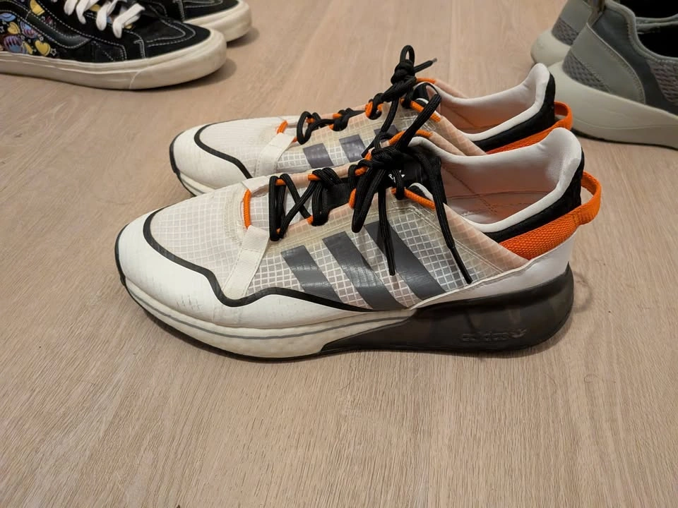 Multiple sneakers for sale. 1. Vans Sk8-Hi (Size 10) - $30 2. Adidas ZX 2K Boost (Size 9.5) - $40 3. Vessi Pacific Sneakers (Size 10) - $50 All 3 for $100 All of them are in good condition with some signs of wear.