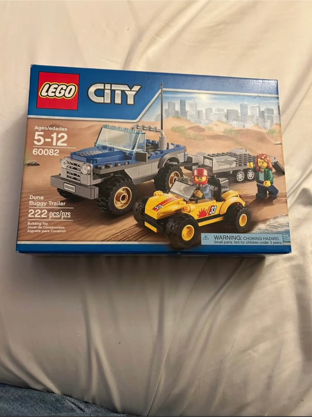 This is the LEGO City Dune Buggy Trailer building toy set. It includes 222 pieces. It's designed for ages 5-12. Unopened