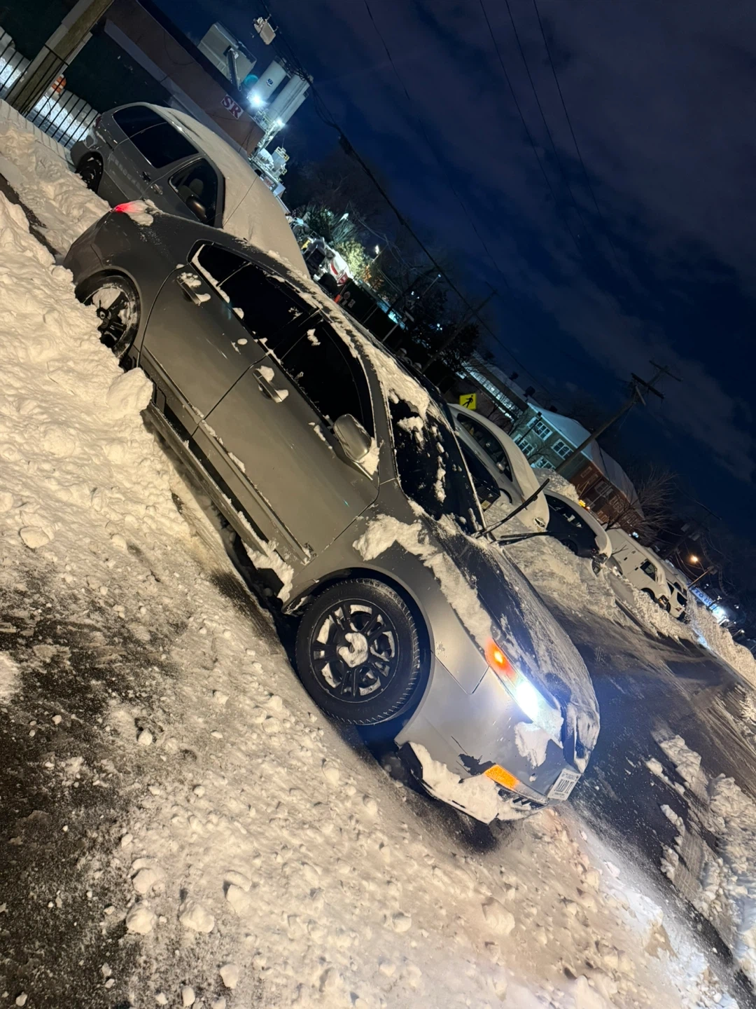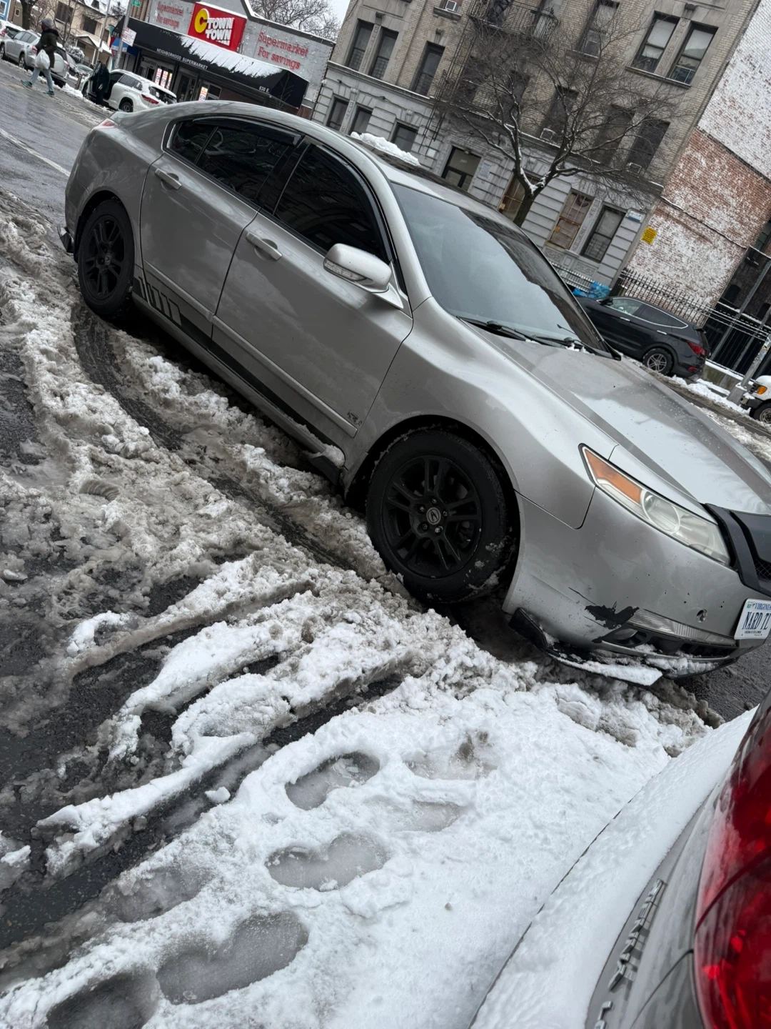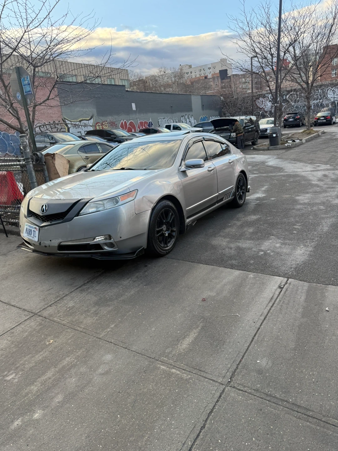 Silver four-door sedan. It's an Acura TL model with black rims. The car has a sleek design and sporty accents. Drives fantastic 220k on the body brain is around 156k new EVERYTHING interior 7/10