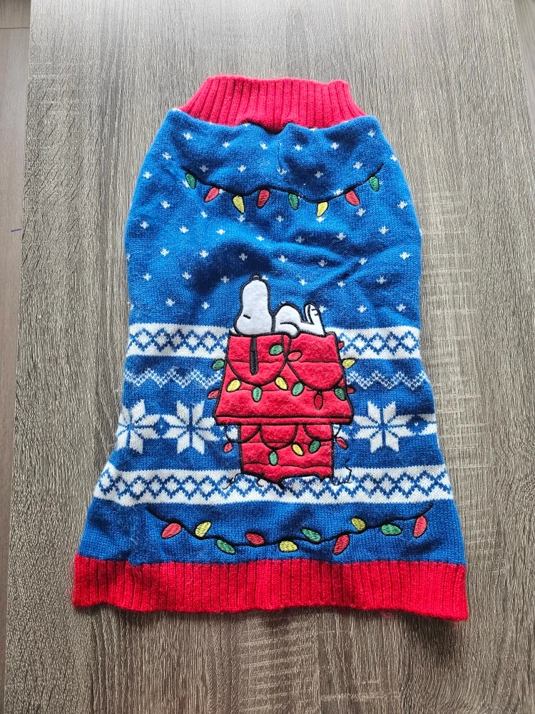 404Keep your furry friend cozy and festive with this adorable Snoopy dog sweater! It features a fun Christmas light design and Snoopy on his doghouse. The sweater is a size medium and in great condition, perfect for the holiday season
