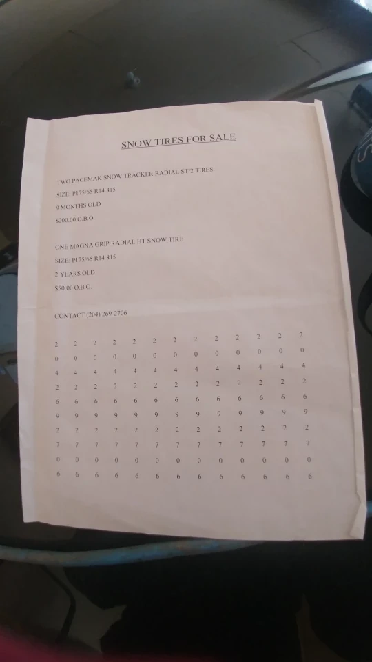 Three Pacemak Snow Tracker Radial ST/2 tires for sale, size P175/65 R14 R15. One Magna Grip Radial HT snow tire, size P175/65 R14 R15 Four all season: 215/60 R 16 95 V True Contact Standard Radial Load All Season Tires on Rims. 4 total all season tires on rims and 3 snow tires minus rims. $400 for all season. $200 for snow tires.