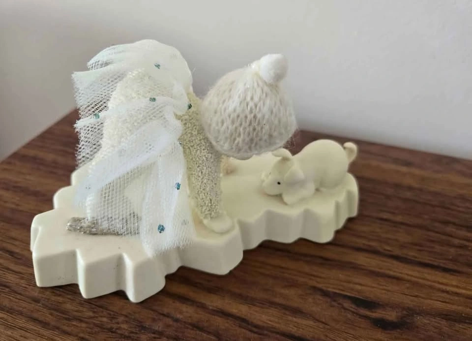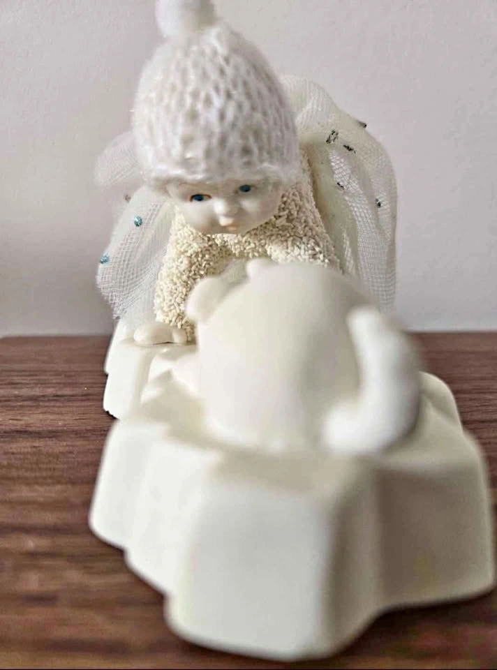 Bring the magic of winter into your home with this adorable Snowbabies “Snow Dream – Difficulty on Ice” figurine by Department 56. Featuring a sweet snowbaby in a cozy white knit hat helping a playful puppy on a snowy patch, this collectible perfectly captures the wonder and charm of frosty fun. ✨ Features: Authentic Department 56 Snowbabies collectible Title: “Snow Dream – Difficulty on Ice” Material: Porcelain bisque with soft-textured details Accented with delicate tulle wings and shimmering glitter boots Hand-painted facial features and intricate craftsmanship Retired piece – rare find for collectors! 🎁 Perfect For: Snowbabies and Department 56 collectors Winter and Christmas home décor Thoughtful gift for holidays, birthdays, or special keepsakes 📏 Approximate Dimensions: Height: 4 in (10 cm) Length: 5.5 in (14 cm) Width: 3 in (7.5 cm) 💎 Condition: Excellent pre-owned condition – no chips, cracks, or repairs. Pick up in Oakville near 6th line and Margot St