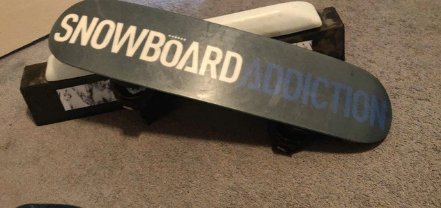 5Snowboard Addiction Jib board, bindings, balance bar. Works well, good condition. Located in Bradford.