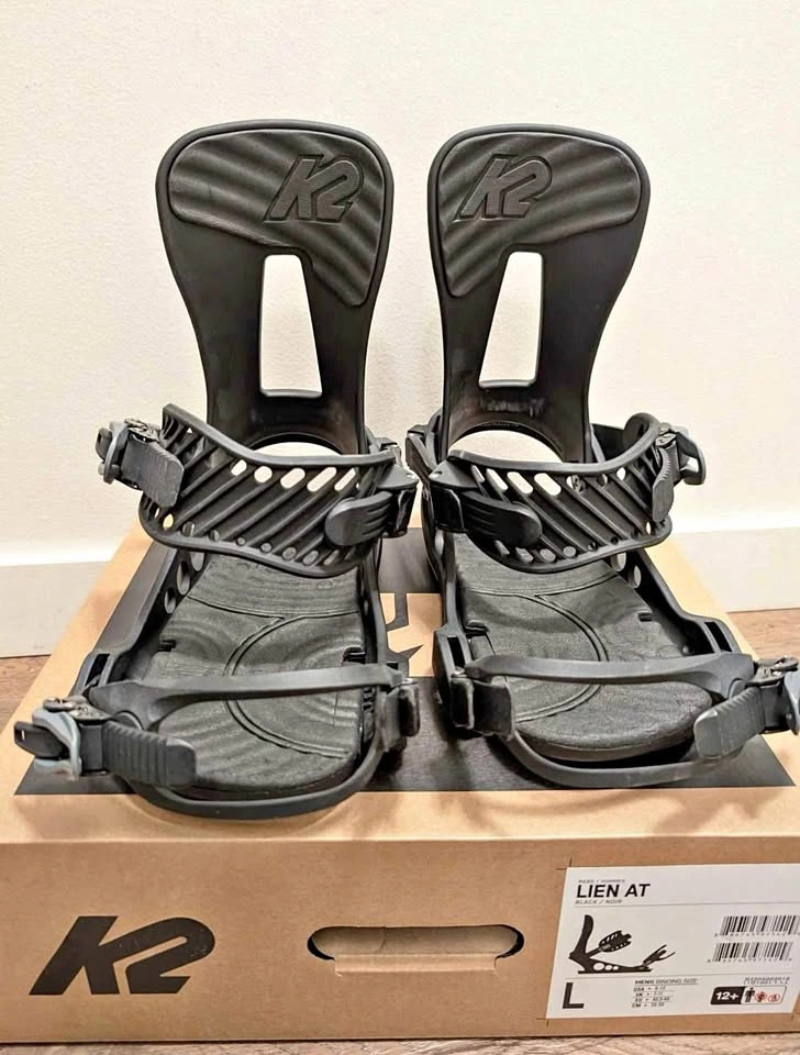 10Used twice, in original box with all parts included. Basically brand new K2 Lien AT Snowboard Binding Size: Large (8 to 12 US) Flex: 6 out of 10 Color: Black Open for offers & trades for same size bindings