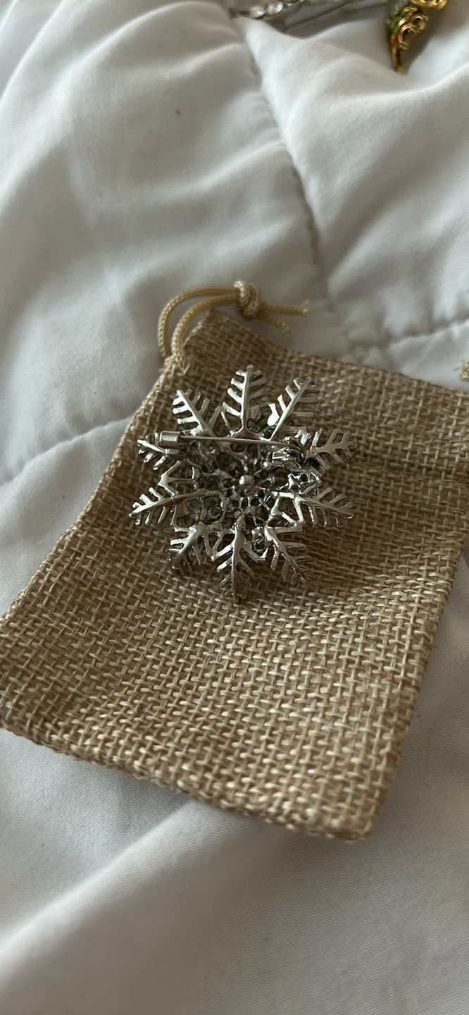 90Selling a beautiful snowflake brooch with pearl accents! It comes with a small burlap bag, perfect for gifting or storage. It's in great condition and ready to add a touch of sparkle to your outfit Pick up is one minute from King George skytrain station Please respect pricing God bless
