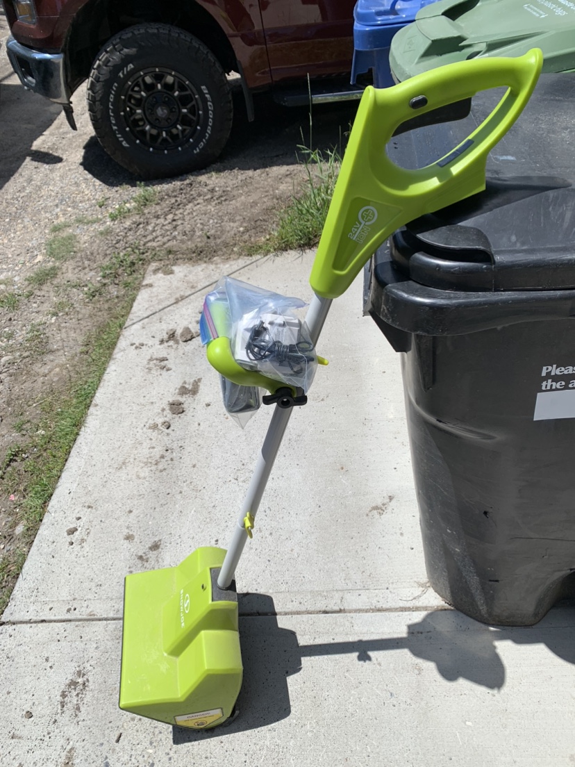 2524v Showjoe snow shovel. Works great, complete with battery and charger. No longer use as we moved and don’t have a driveway anymore.