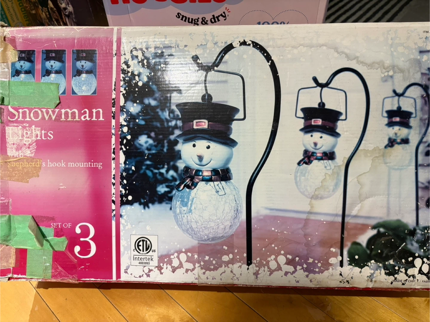 10Selling a set of 3 snowman lights with shepherd's hook mounting. They're in good condition and ready to add some winter charm to your space